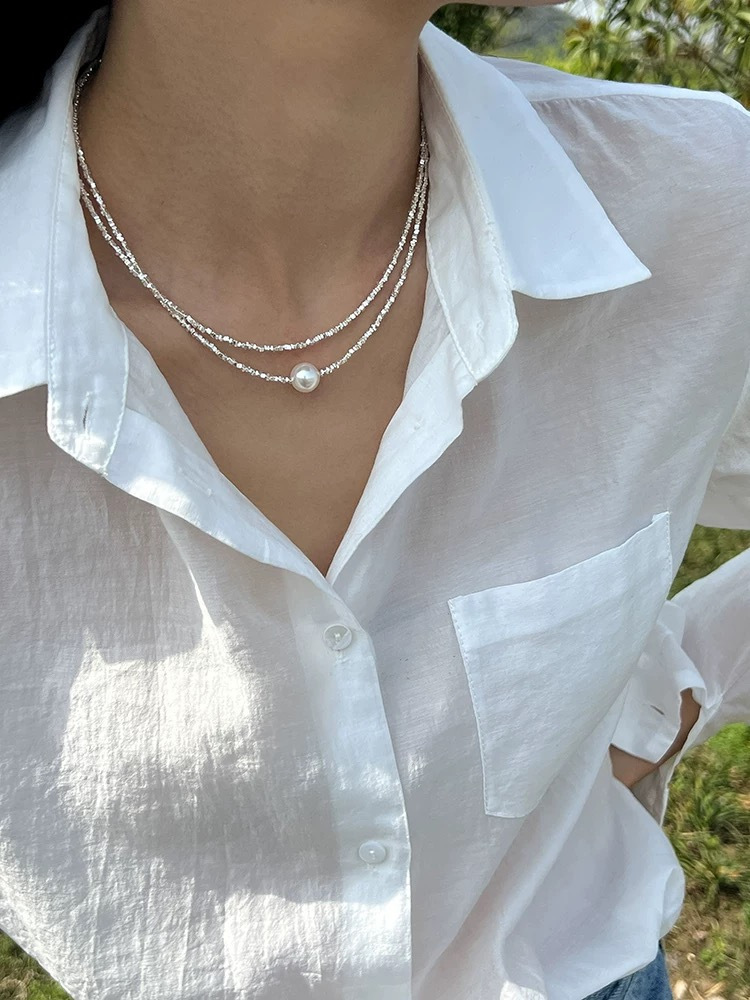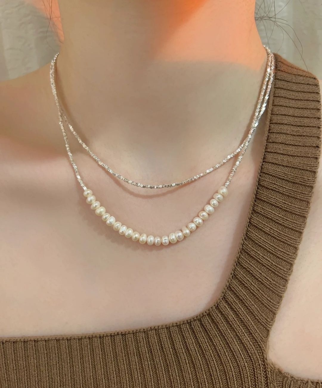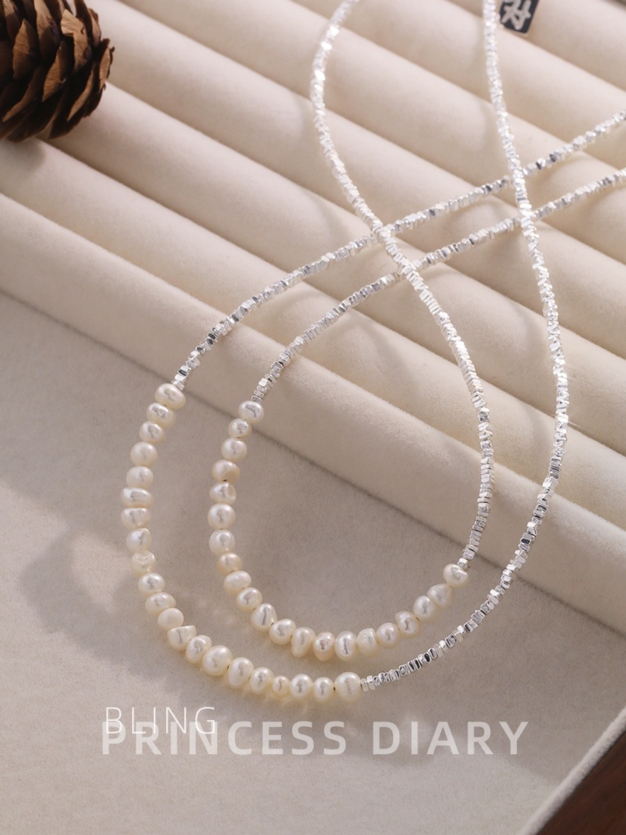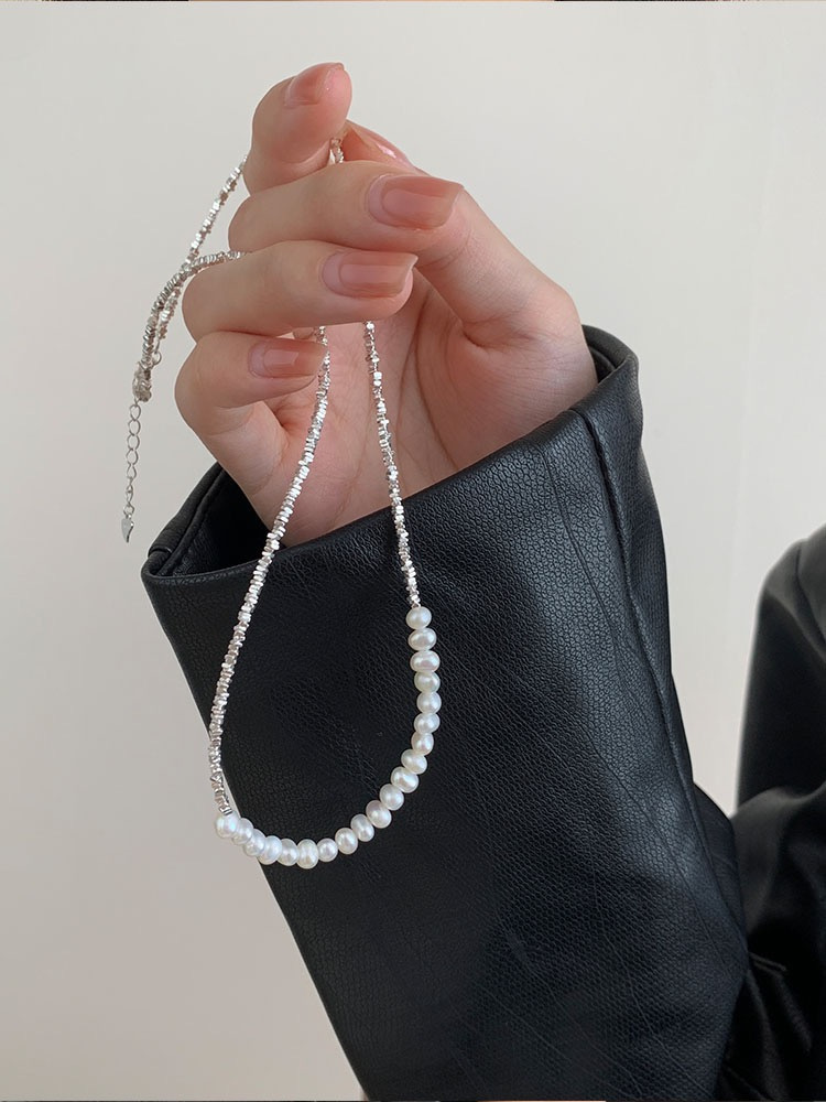 短T搭配这款纯银碎银子珍珠项链和手链都好好看