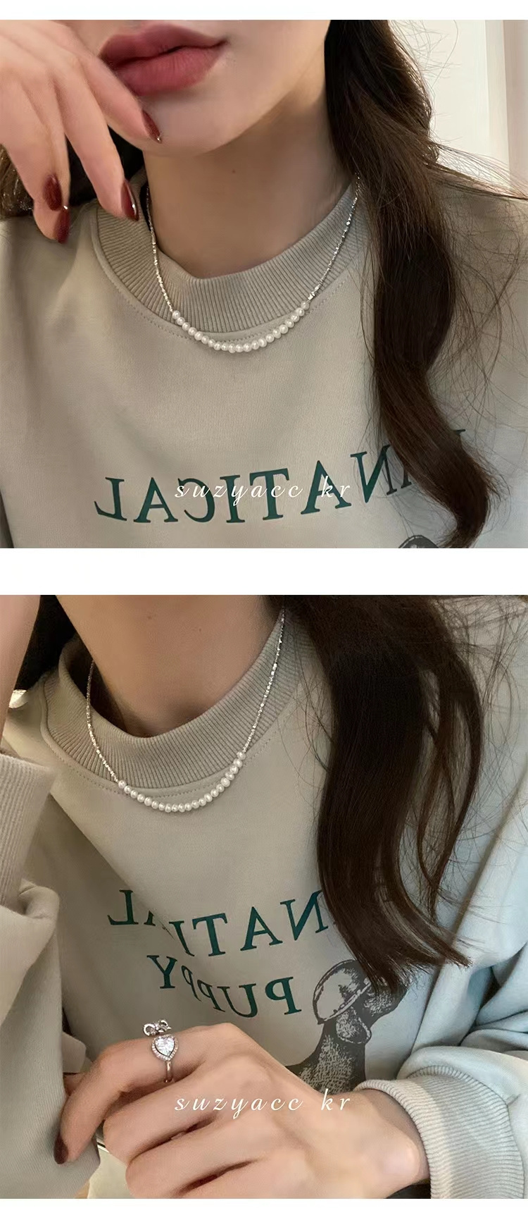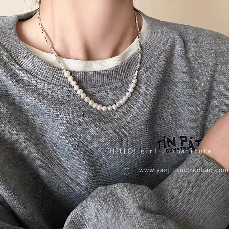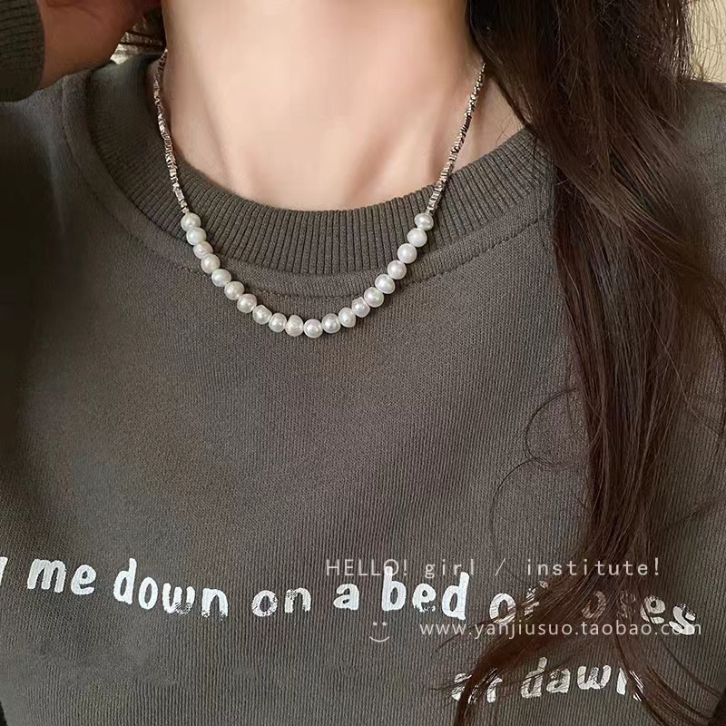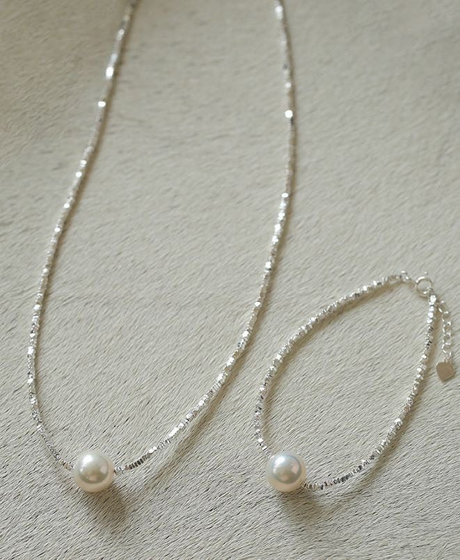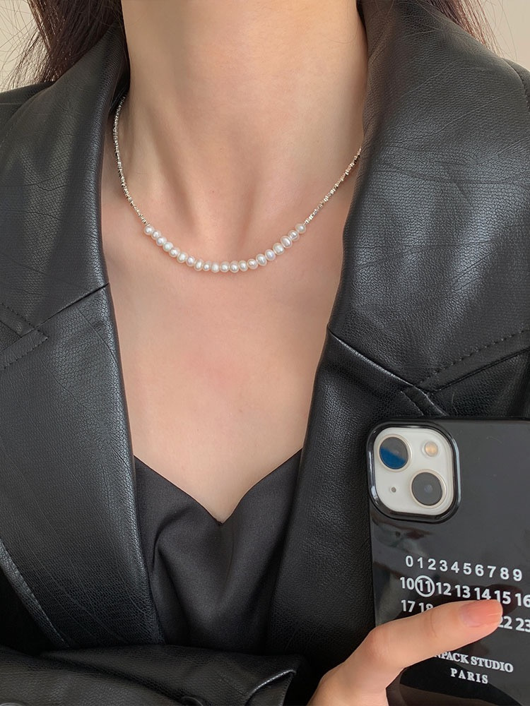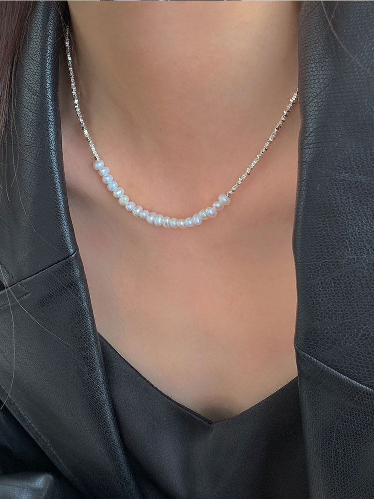 短T搭配这款纯银碎银子珍珠项链和手链都好好看