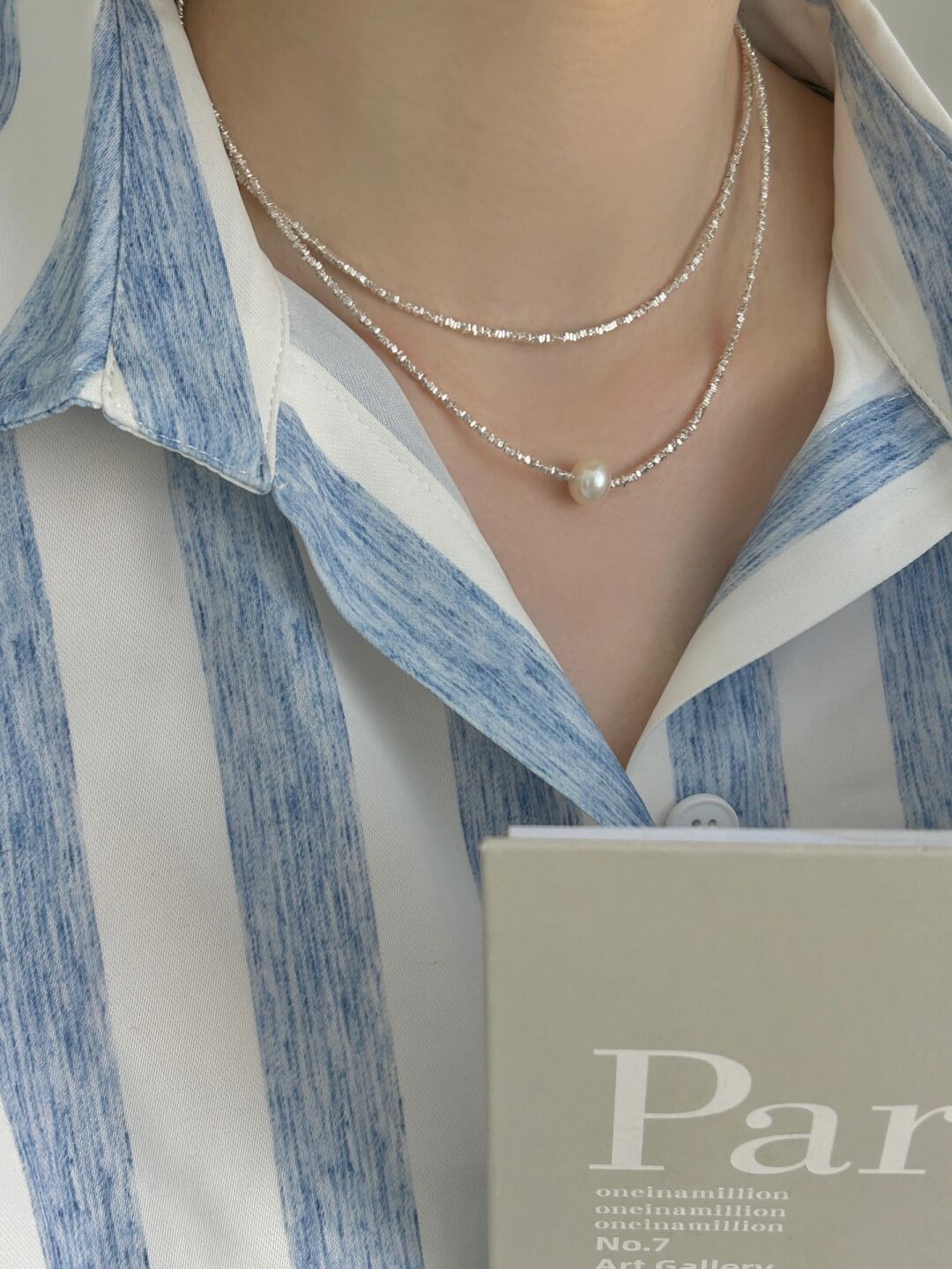 这条链子还是很适合春夏穿搭的,不挑衣服,不限风格,特别喜欢这个款式的姐妹还可以多买一条项链绕两层戴,做双层的同款“碎银子”手链。