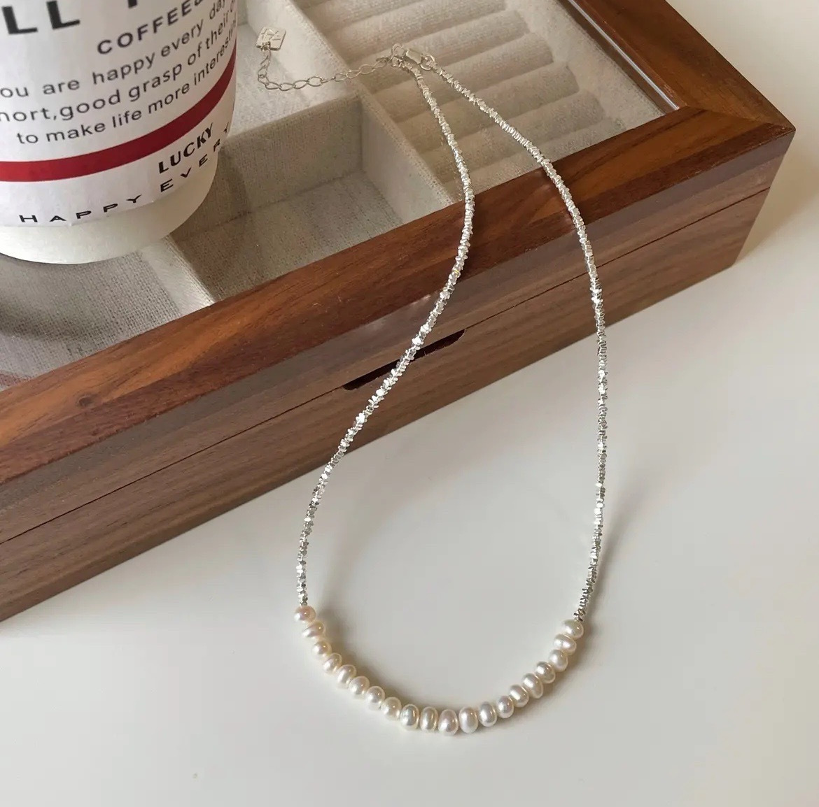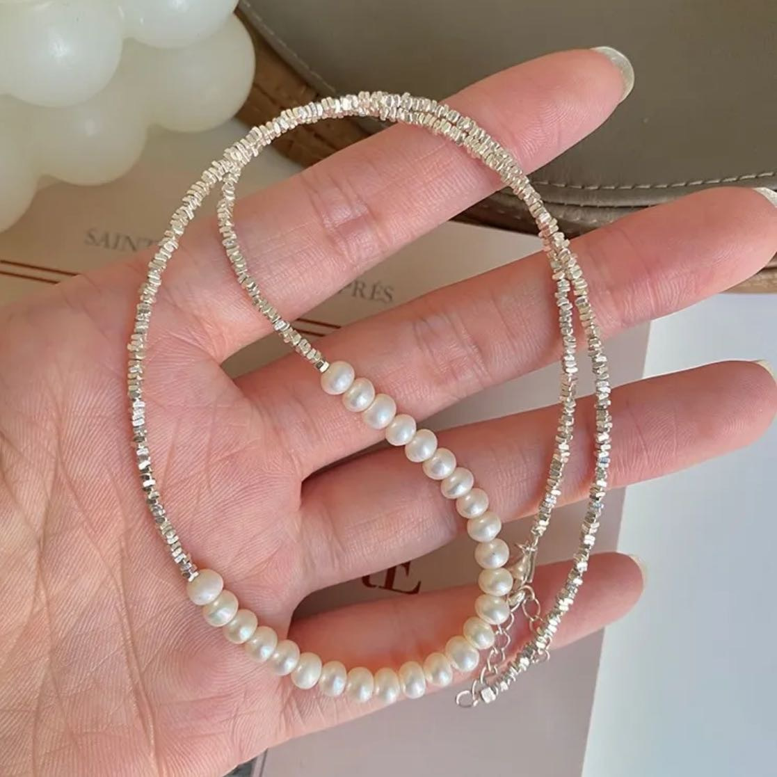 ◾️925碎银子长珍珠手链