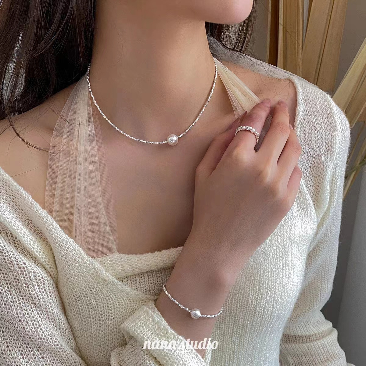 年后发!碎银子系列首饰!施华洛珍珠+925银!组合入!配套真的很绝很精致!!超费手工的碎银子,性价比超高~ 项链、手链都有首饰品