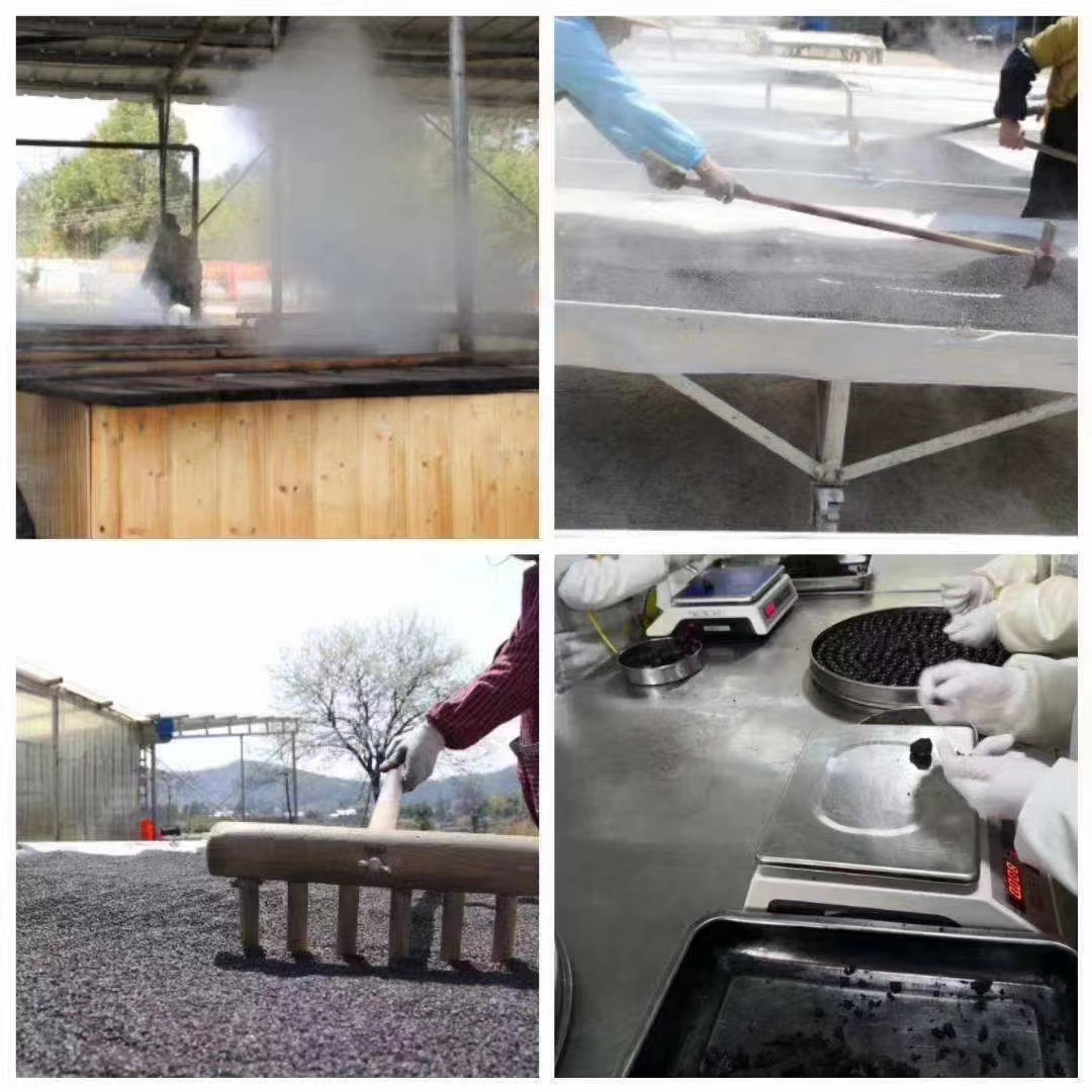2.工艺:柴火锅炉蒸6小时,露天哂至八成干,反复9次后手工切片装瓶。