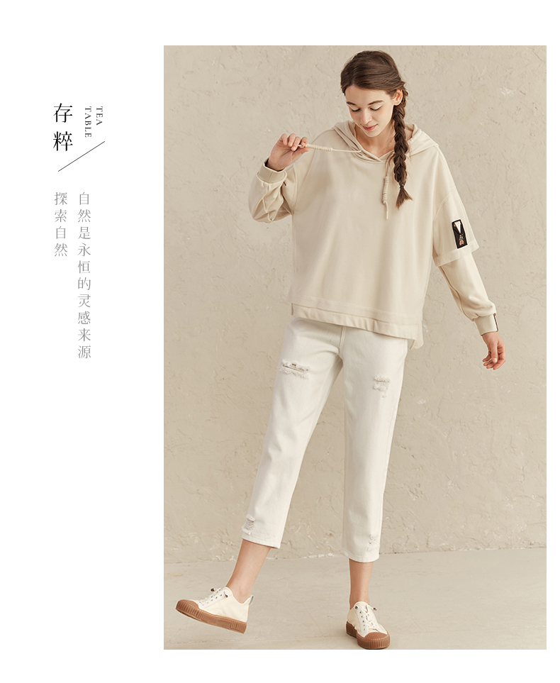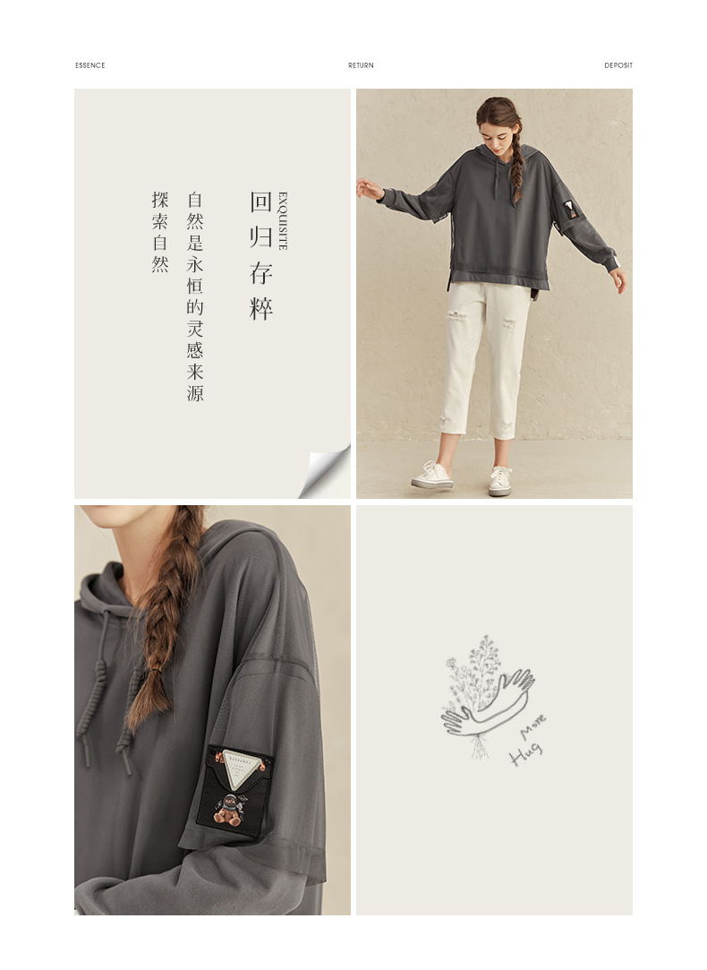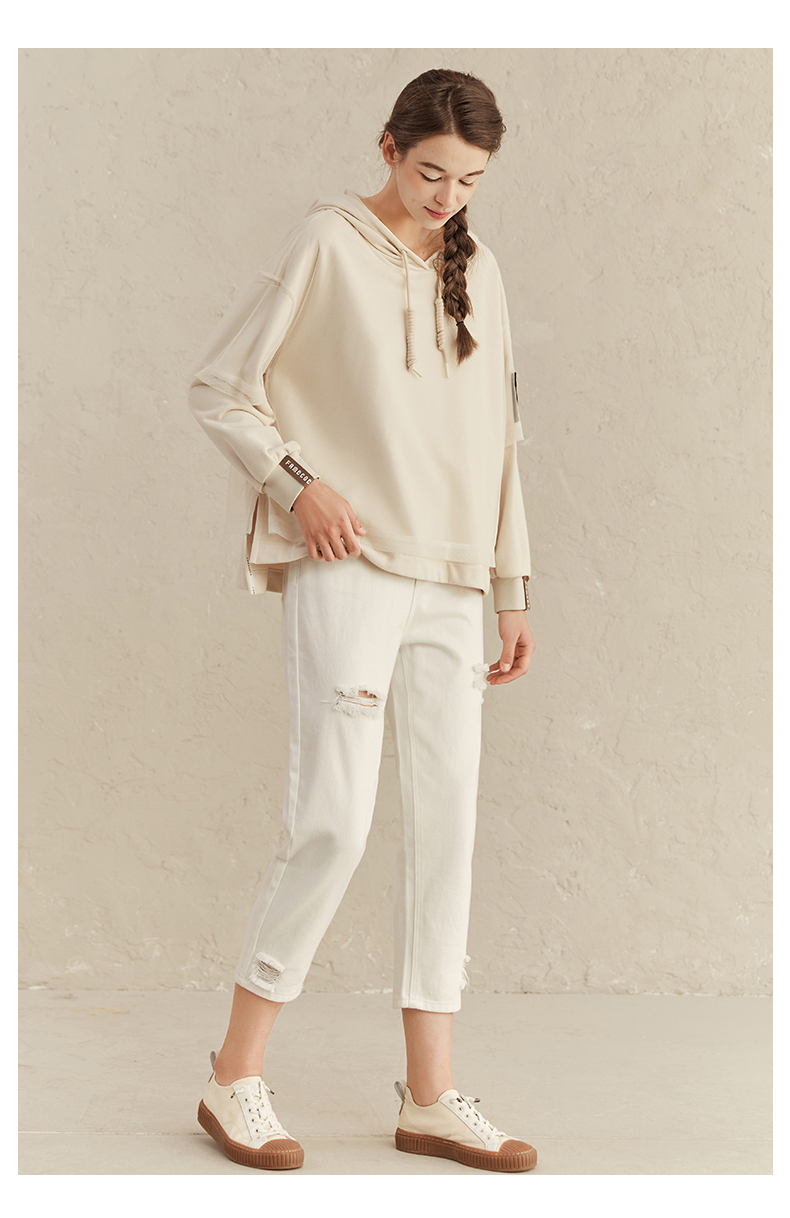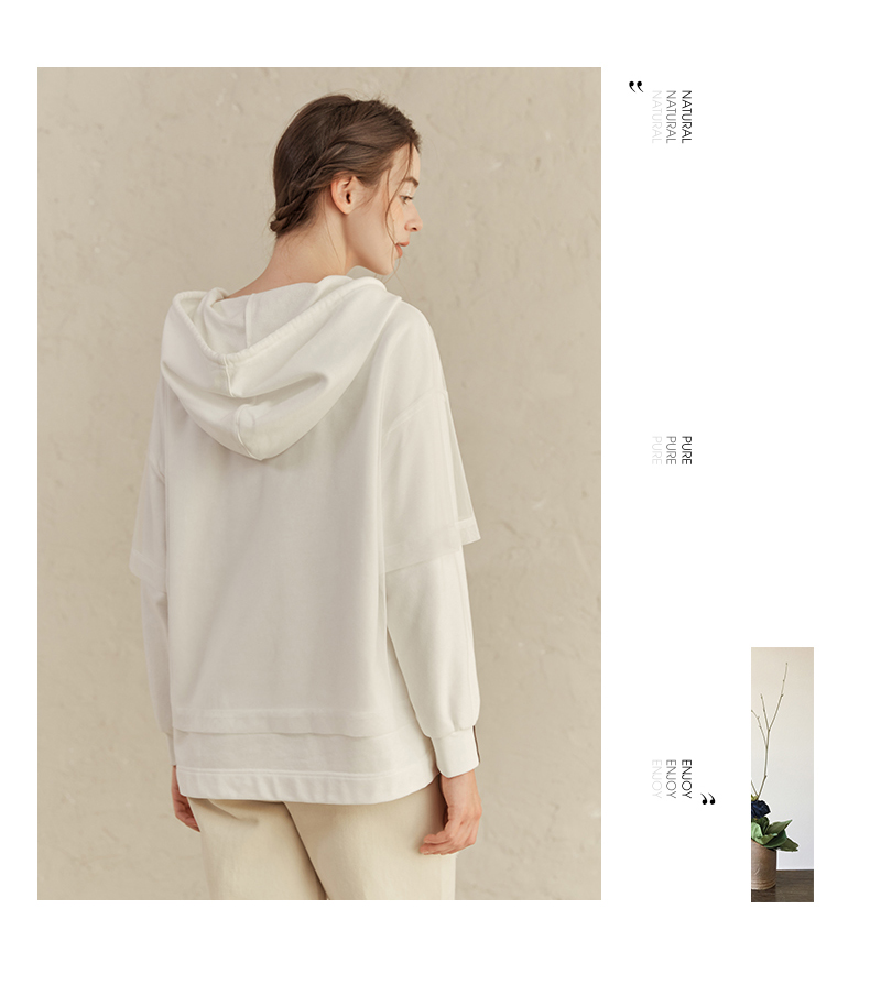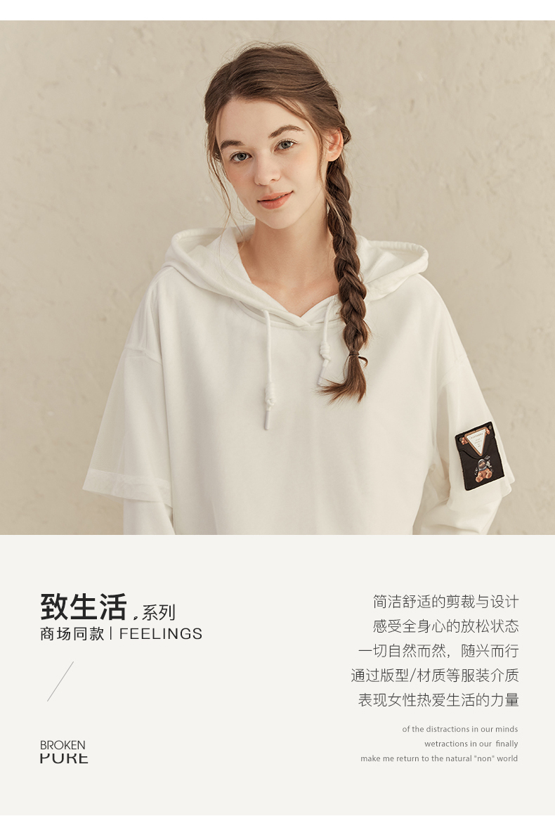 Famecoco范可儿白色连帽卫衣女款ins网纱拼接上衣F221BL008