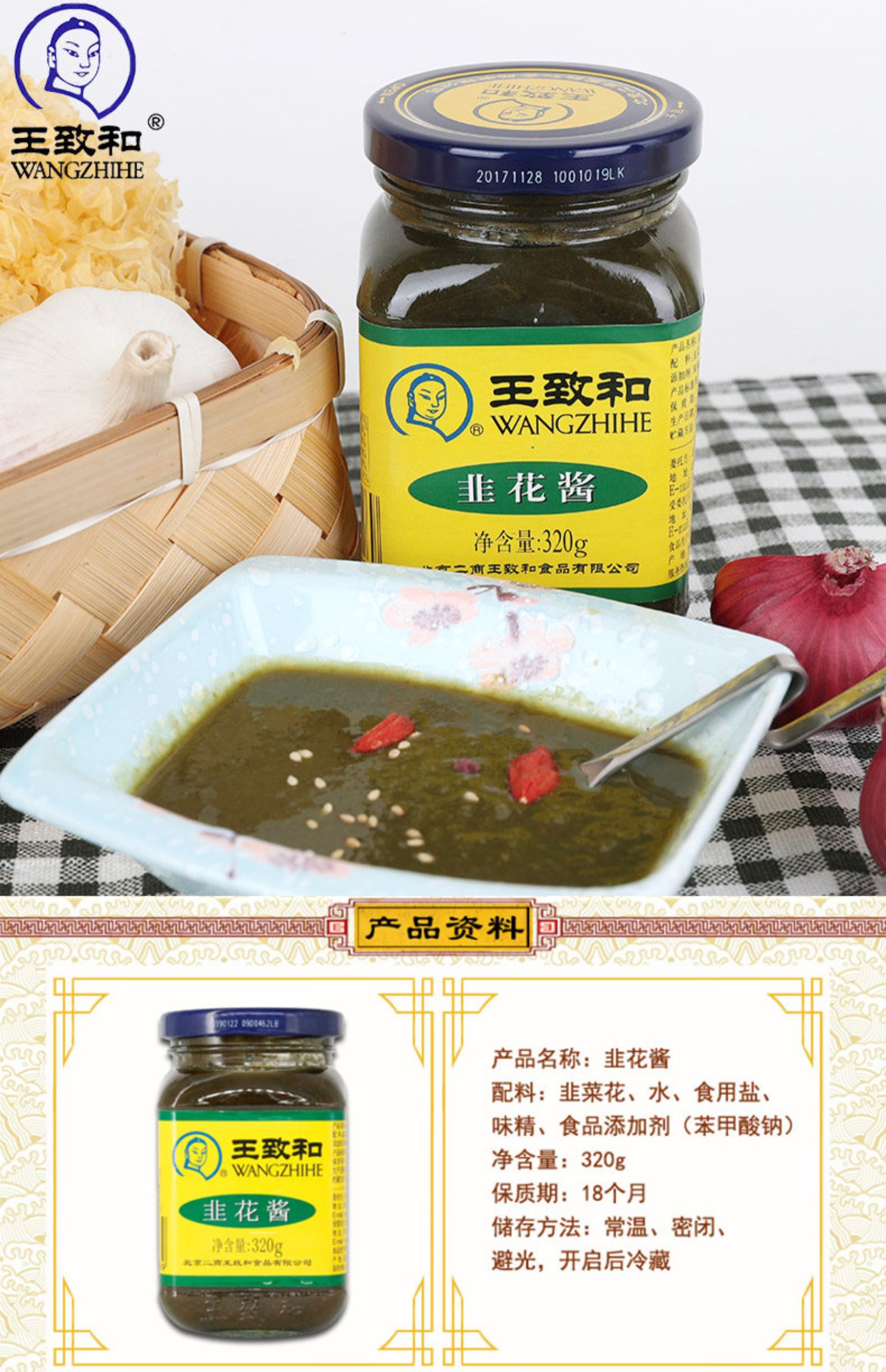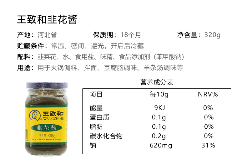 王致和 韭菜花 韭花酱 320g/瓶