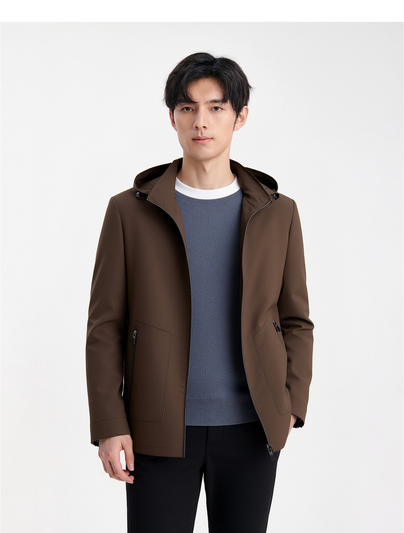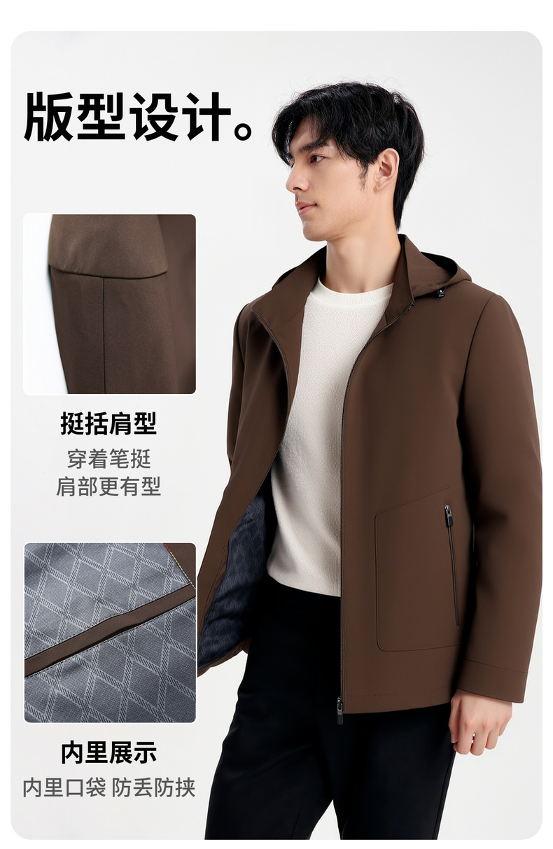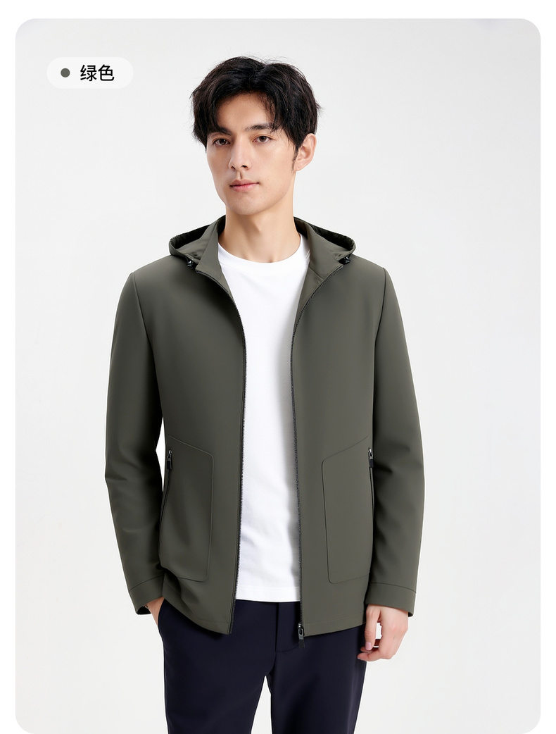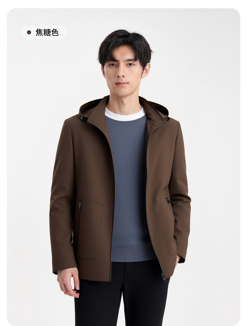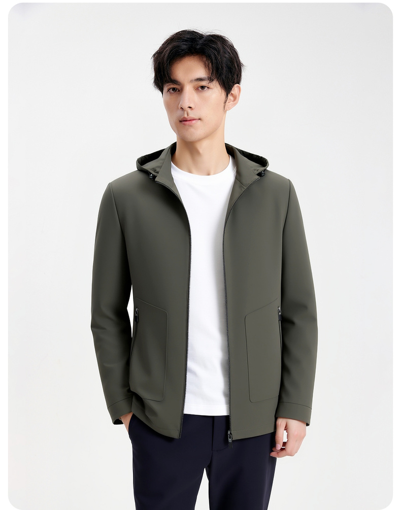 圣得西男士连帽舒适百搭夹克2025秋季新款通勤易打理质感垂顺外套