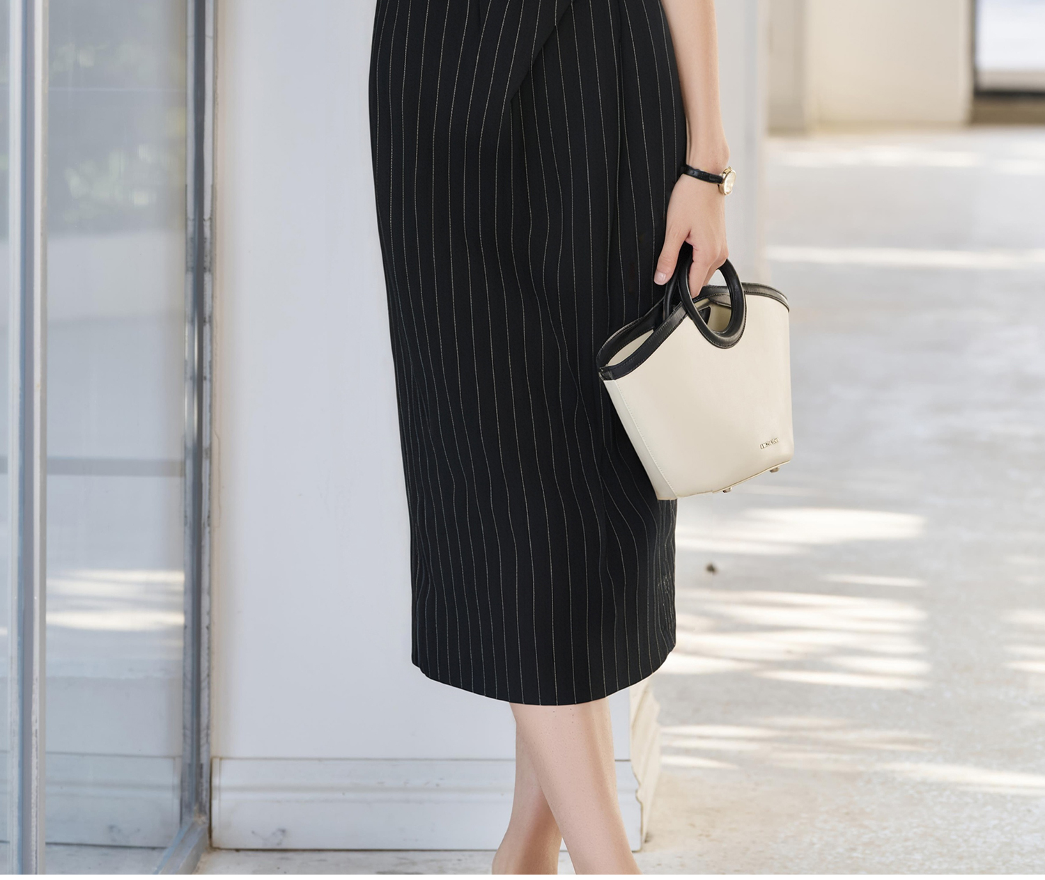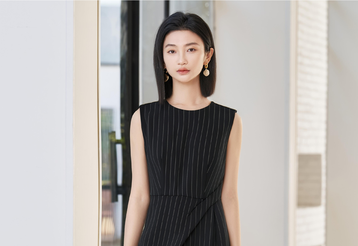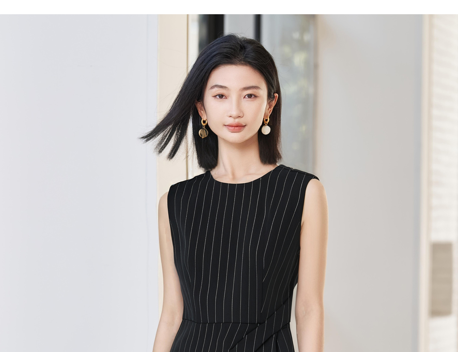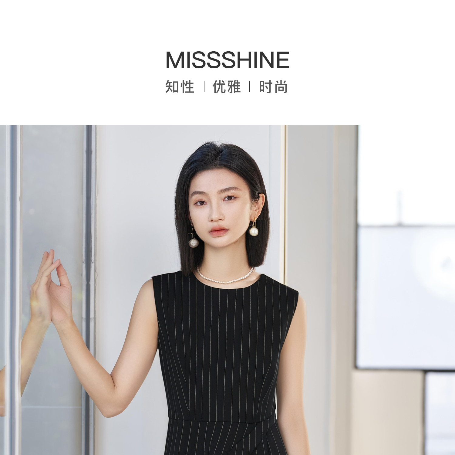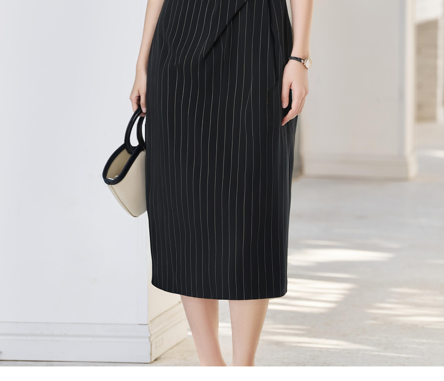 米思阳2026夏季新款知性通勤条纹黑色连衣裙修身显瘦包臀裙女1723/1258