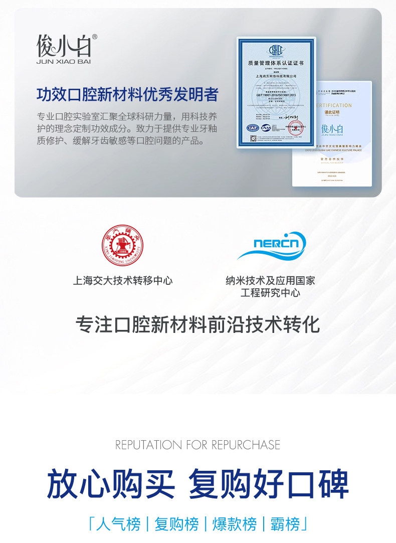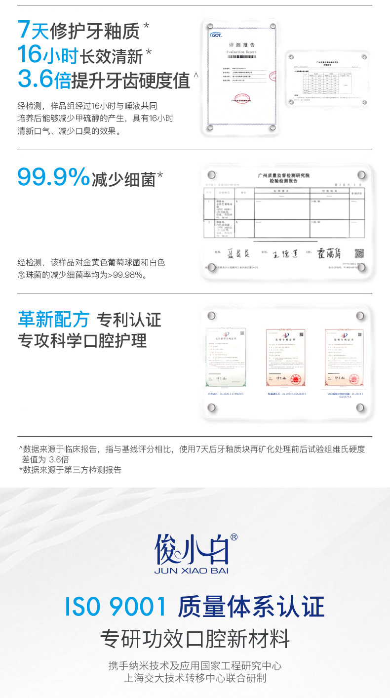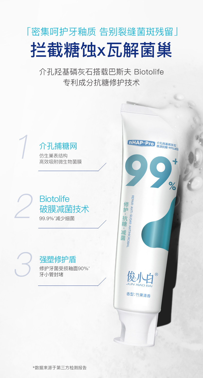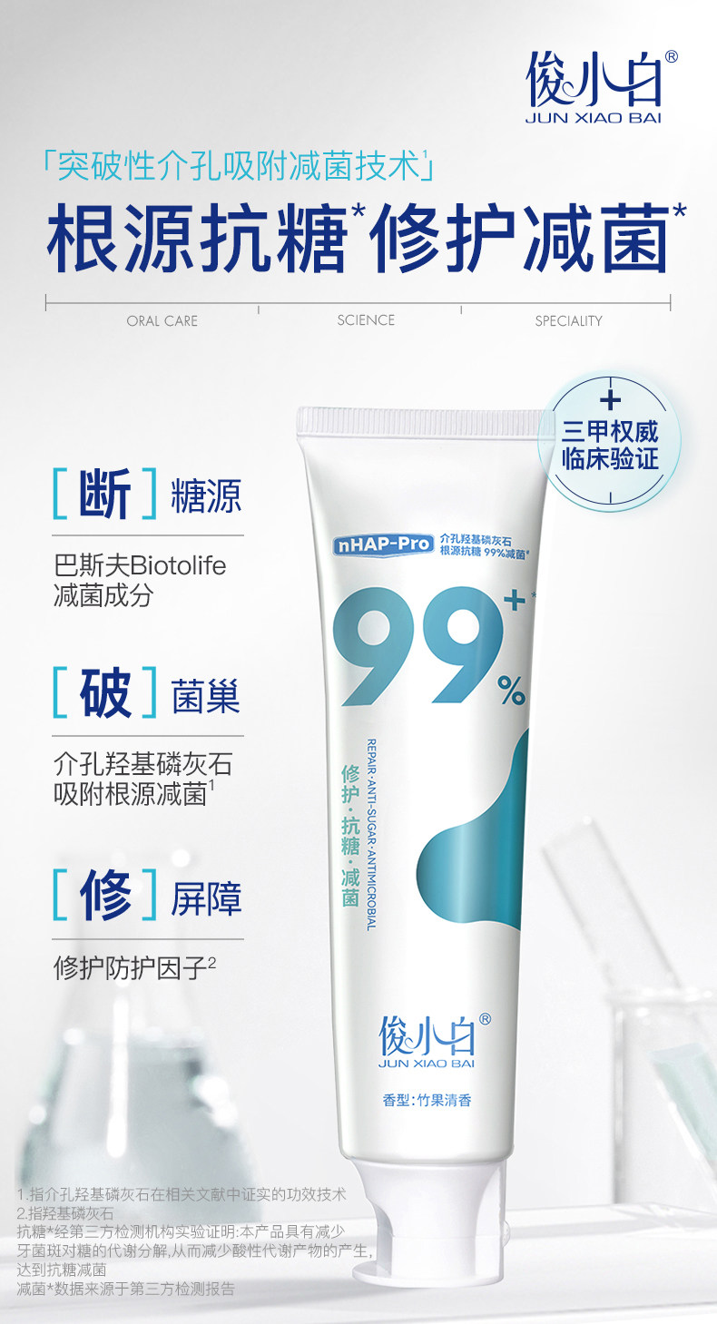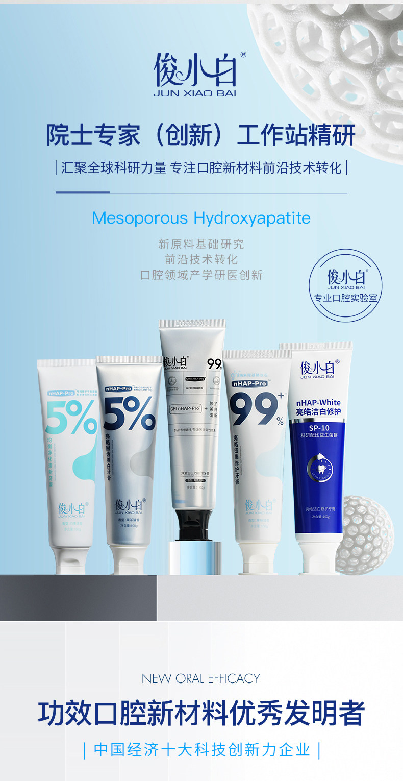 俊小白介孔羟基磷灰石亮皓洁白牙膏100g