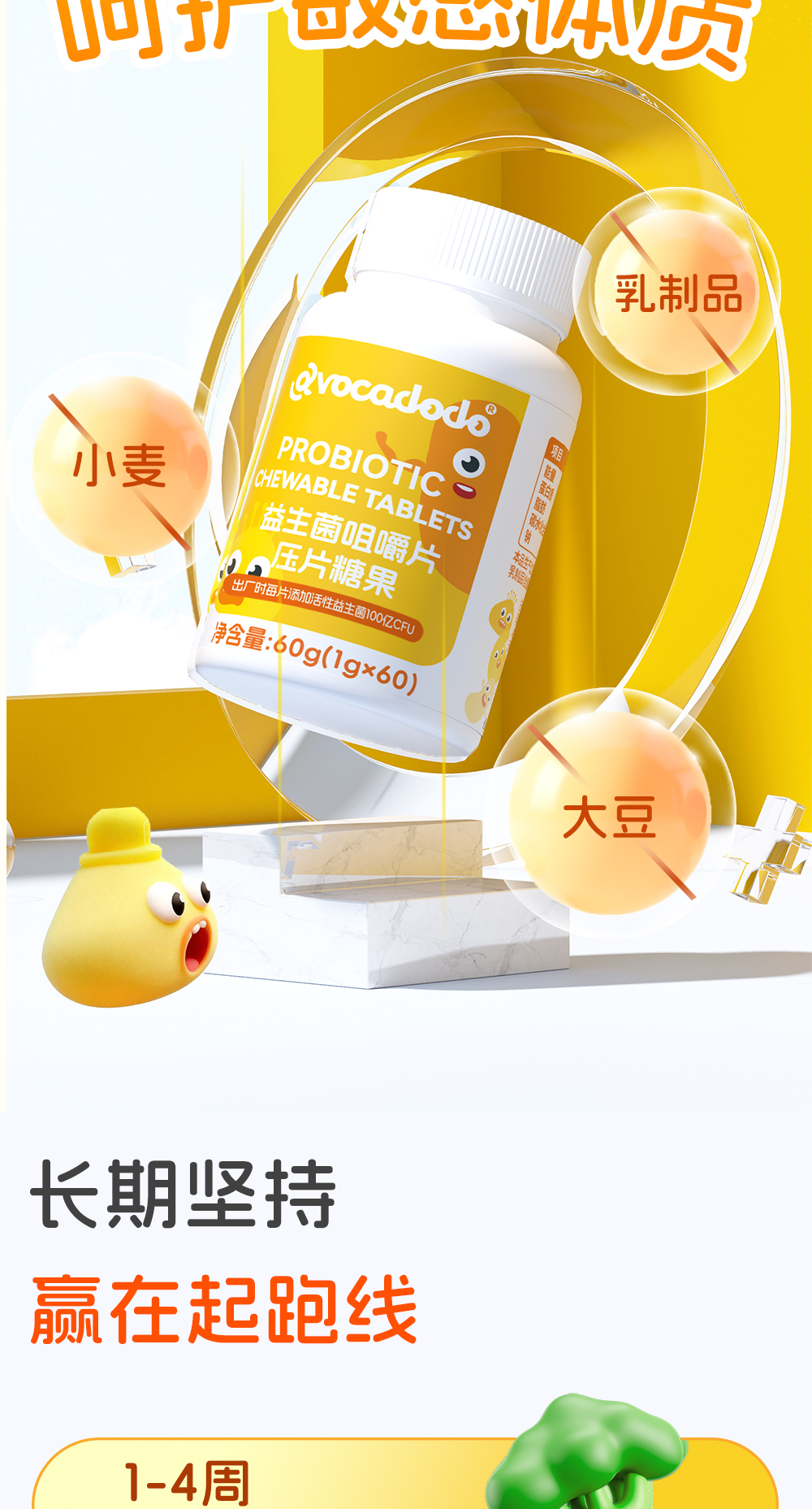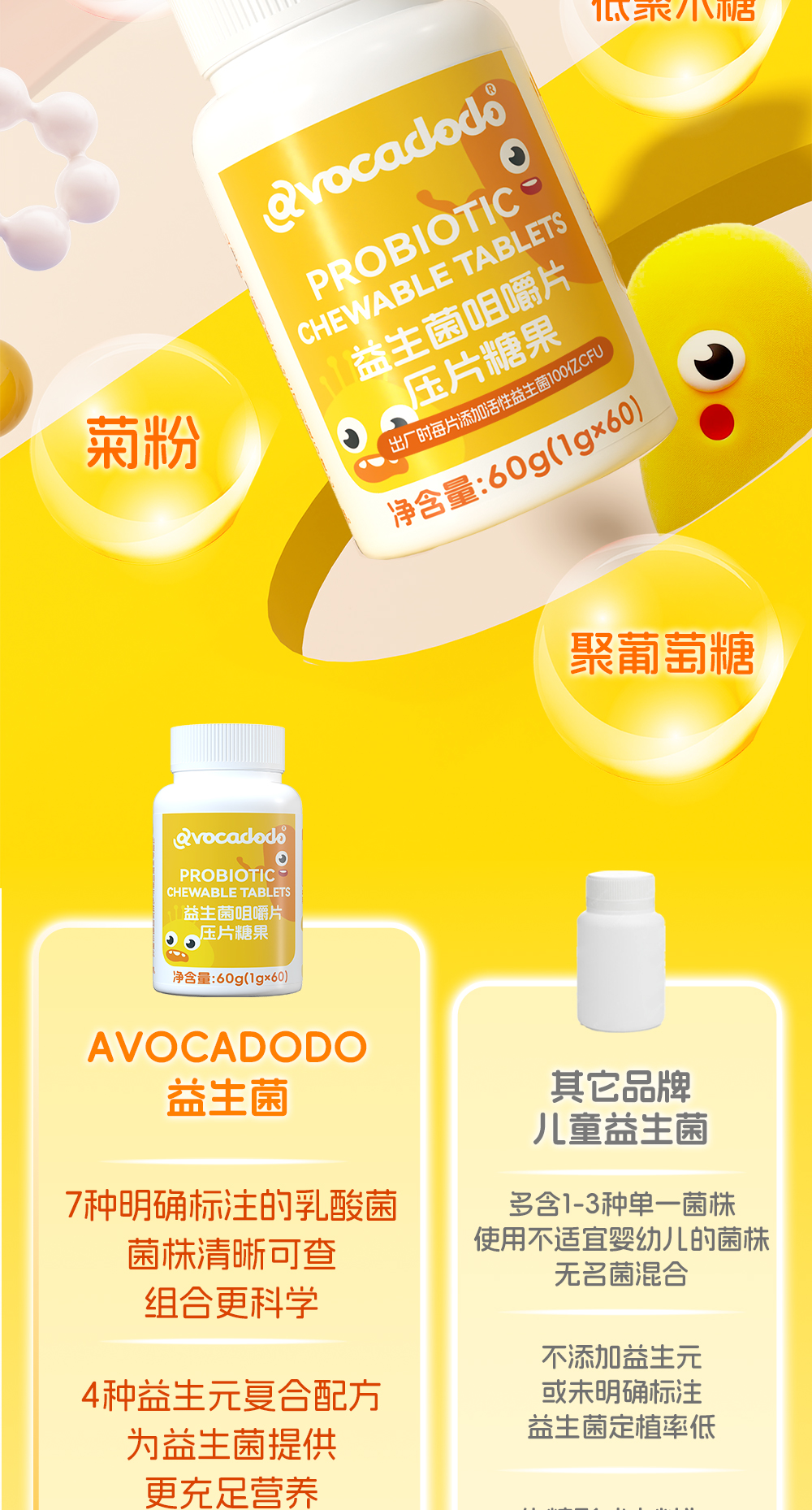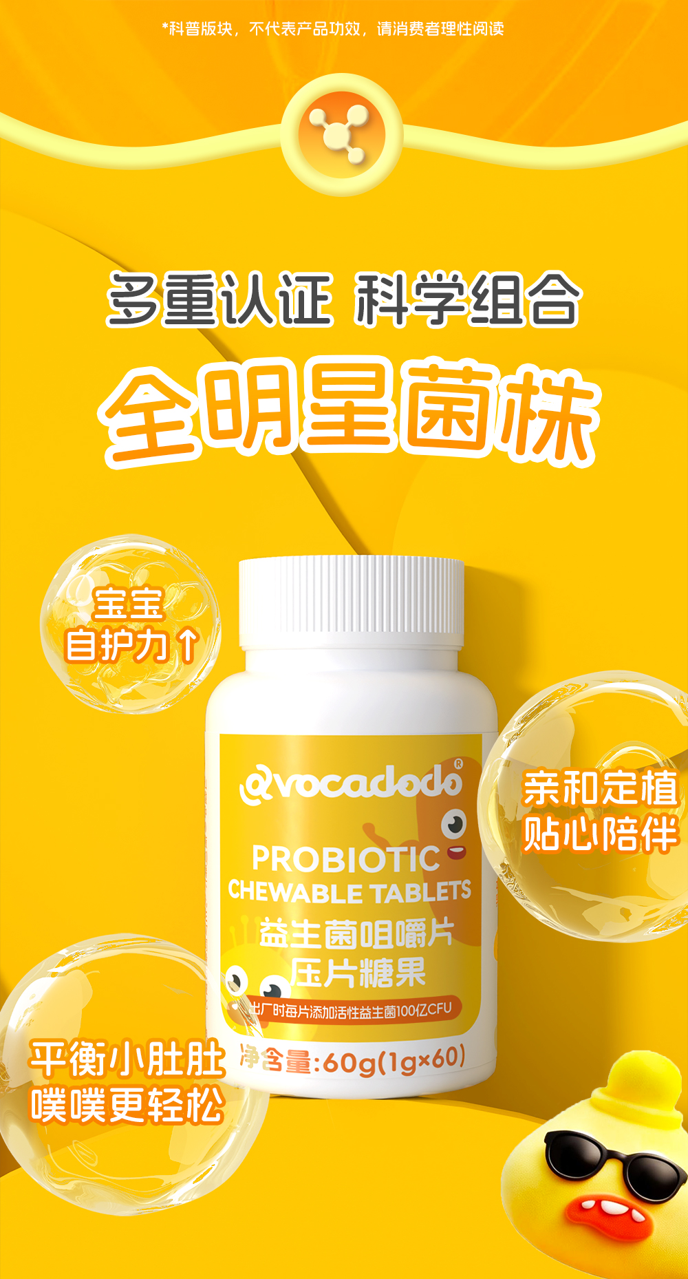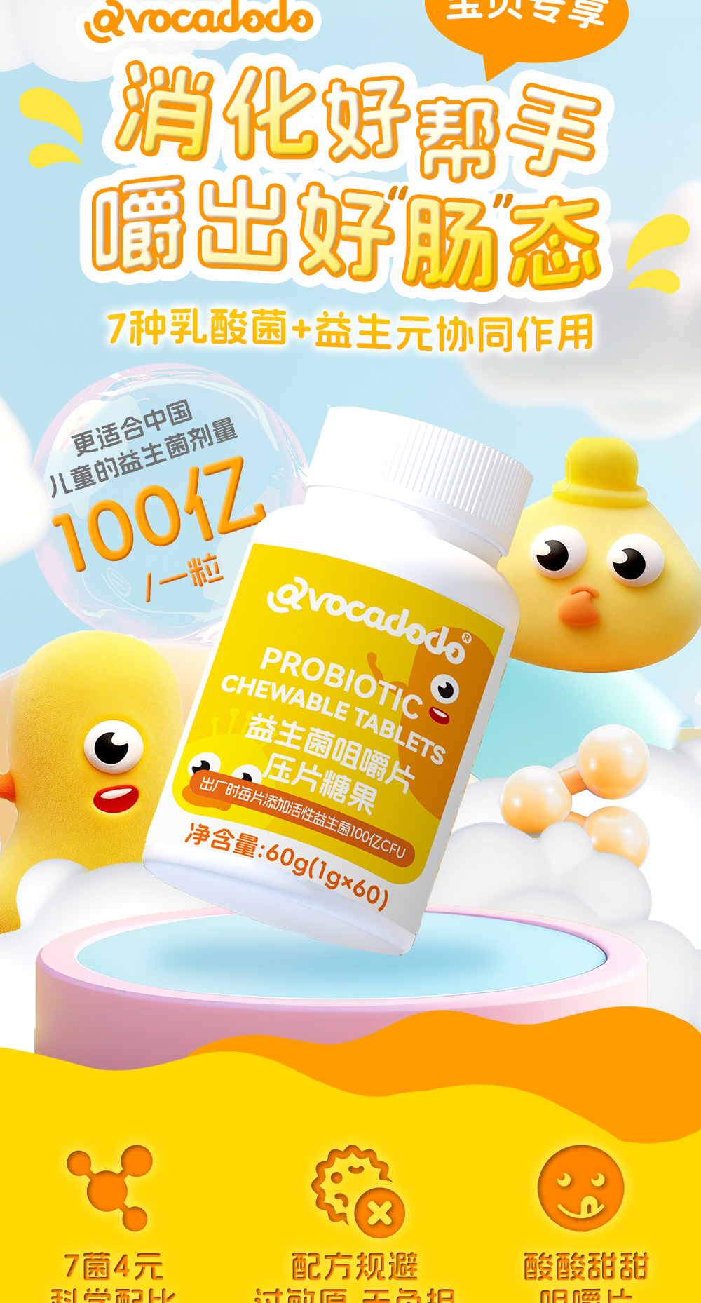 Avocadodo儿童益生菌咀嚼片100亿活菌双歧杆jun乳酸菌益生元青少年
