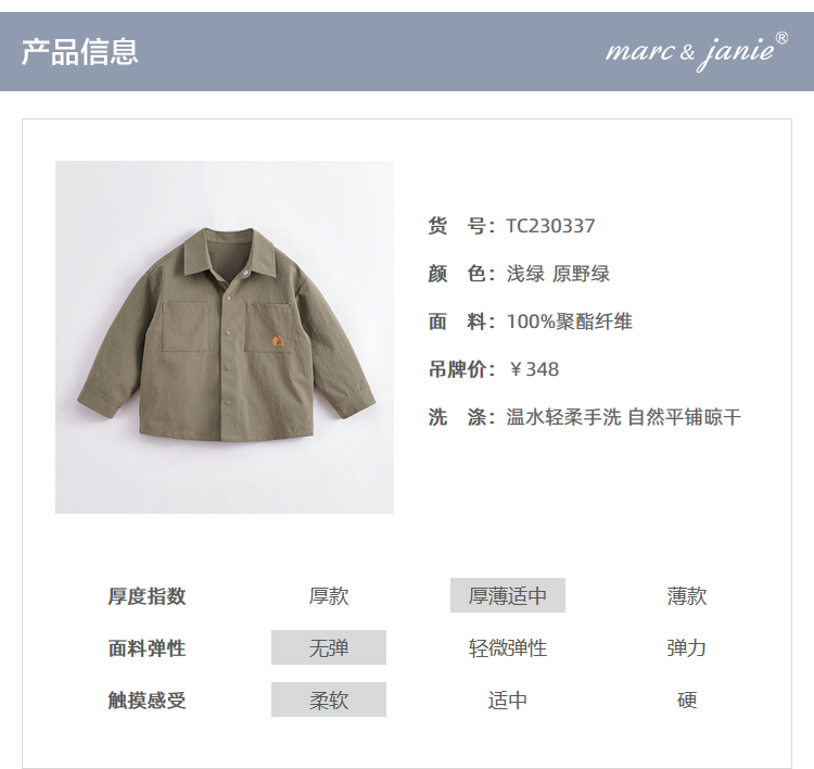 马克珍妮春装新款 男童户外风吸湿速干宽松衬衫230337