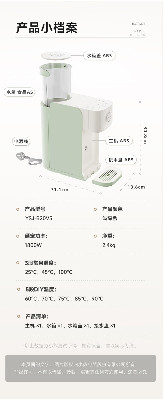 小熊(Bear) 饮水机家用即热式饮水机净饮一体机饮用水小型茶吧机烧水机台式家用 【性价比推荐款】3秒速热 YSJ-E20E1