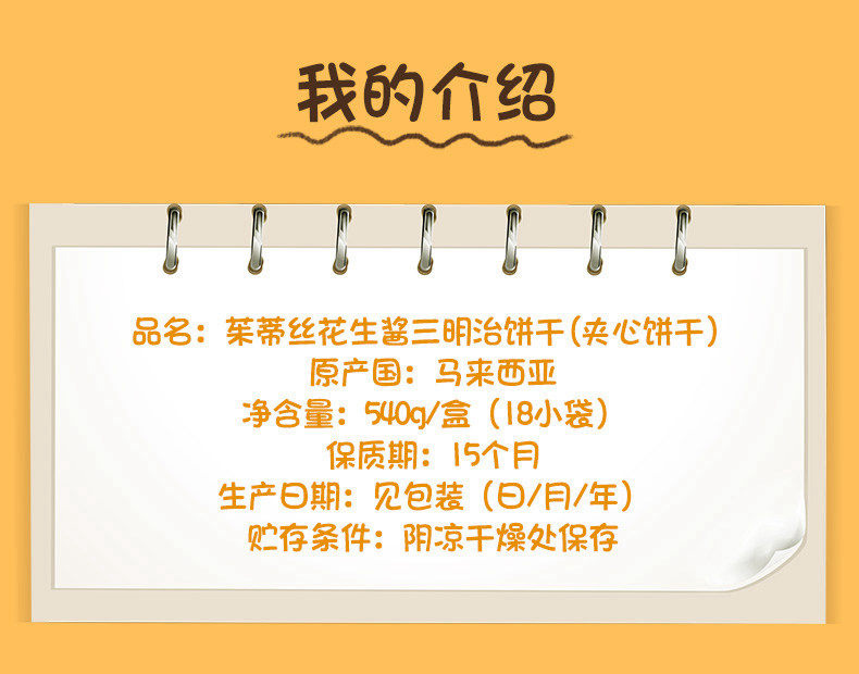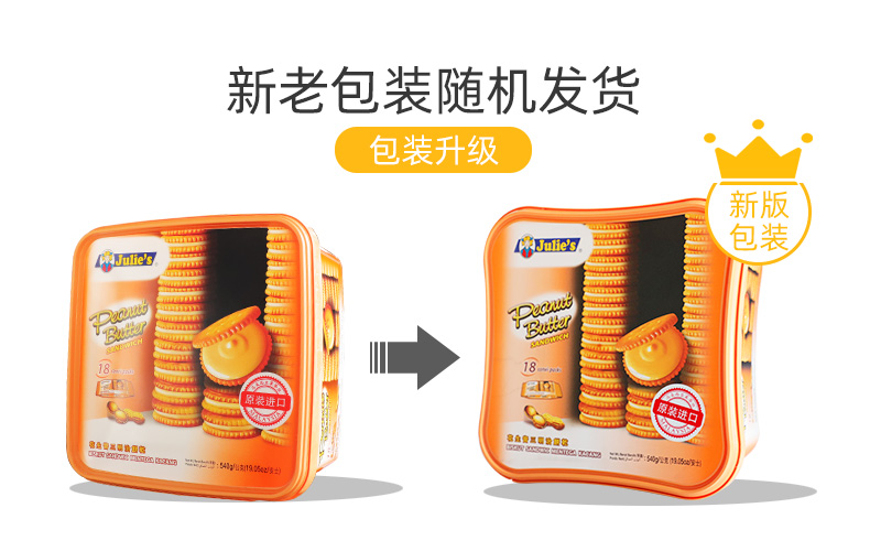 马来西亚进口 茱蒂丝(Julie's)纯花生酱三明治饼干 礼盒 540g (新老包装随机发货)