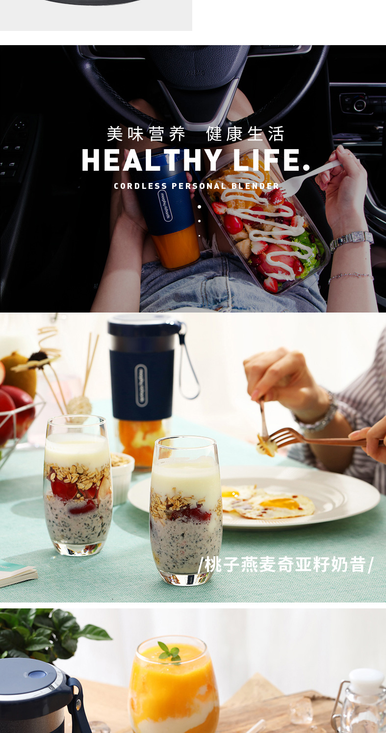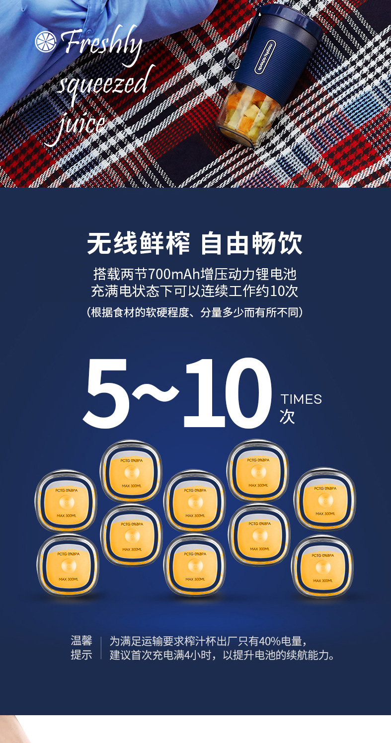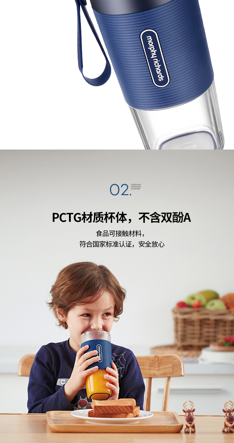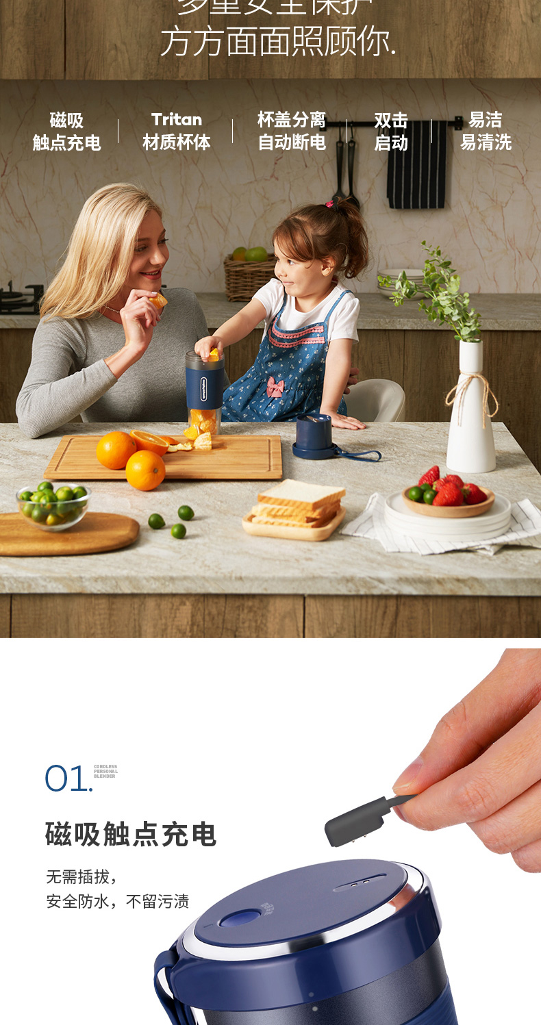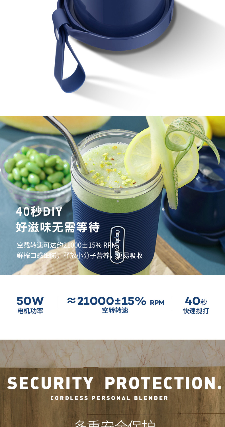 摩飞电器(Morphyrichards)榨汁机 便携式榨汁杯 磁吸充电迷你无线果汁机 料理机随行杯 MR9600 蓝色
