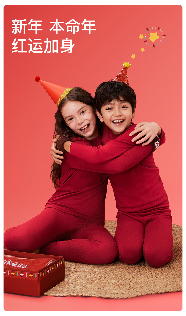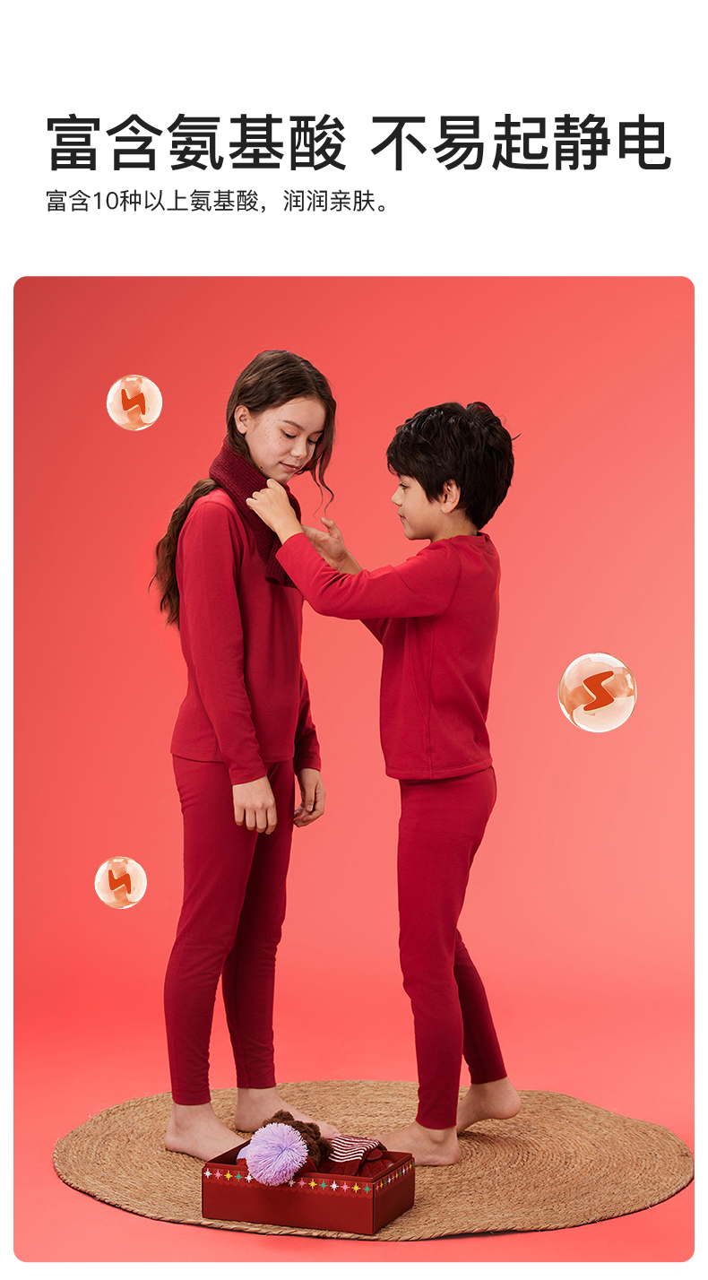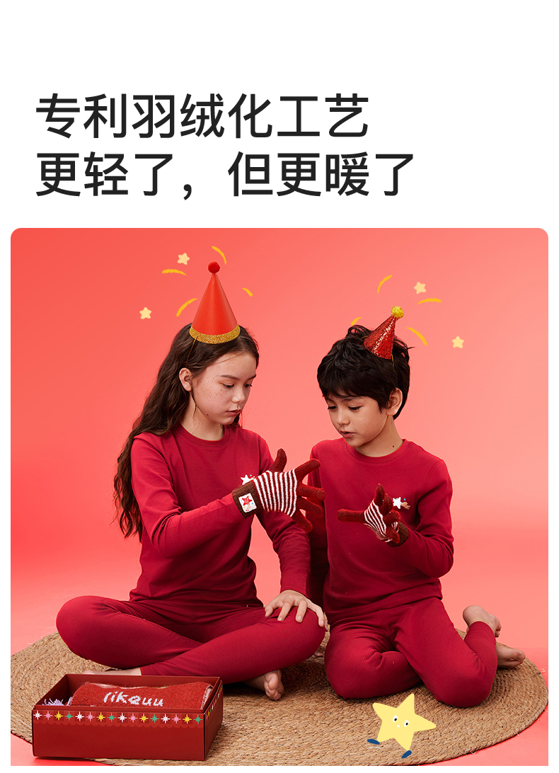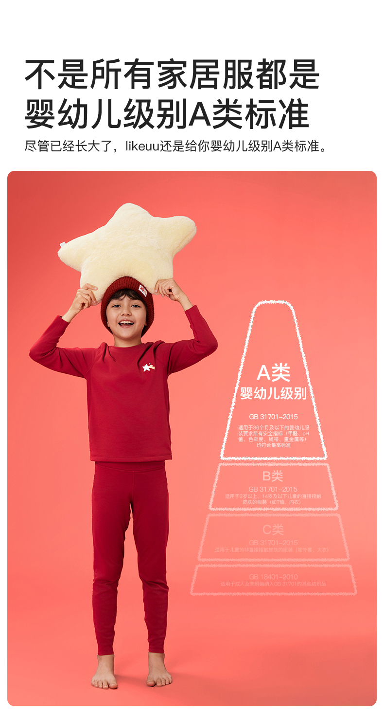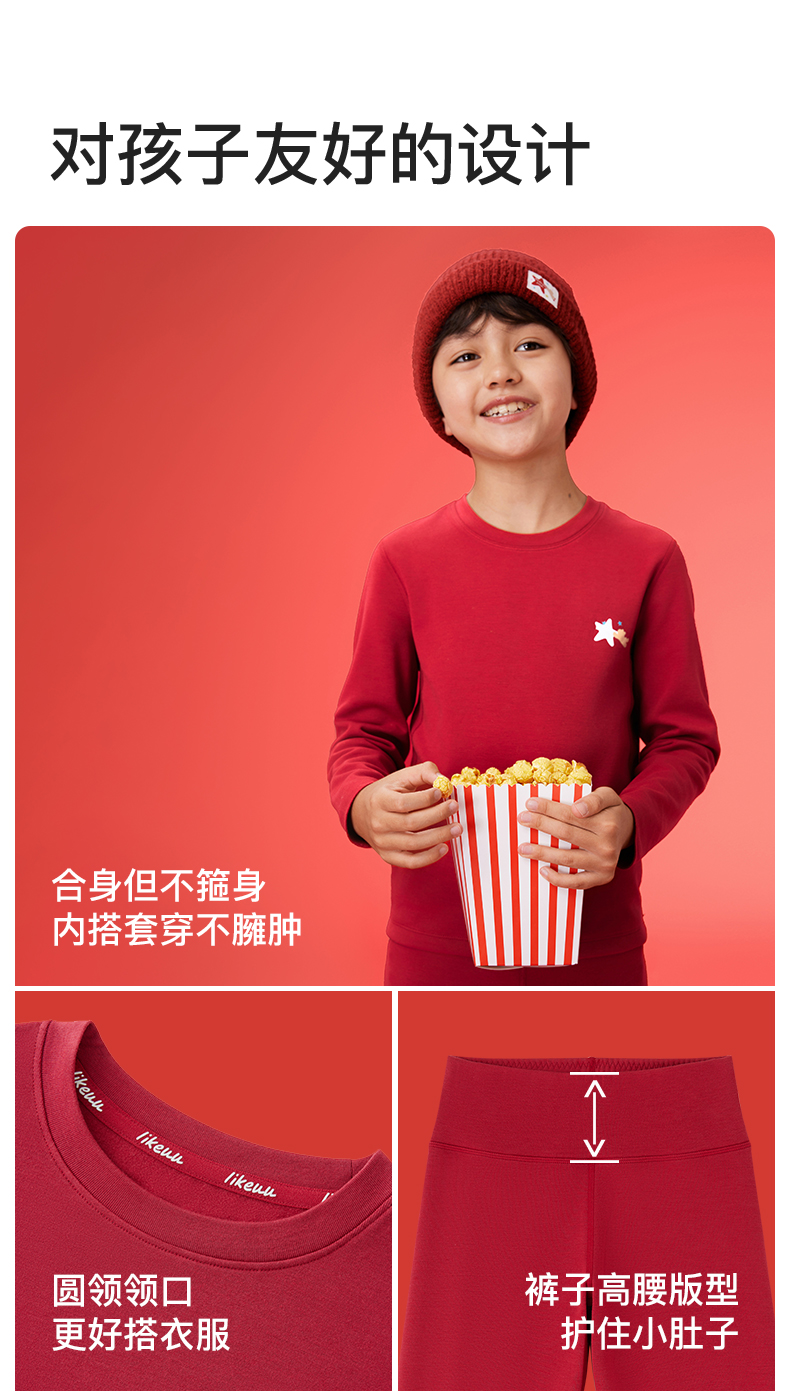 likeuu儿童本命年保暖内衣套装马年红色男女大童秋衣裤睡衣新年dr