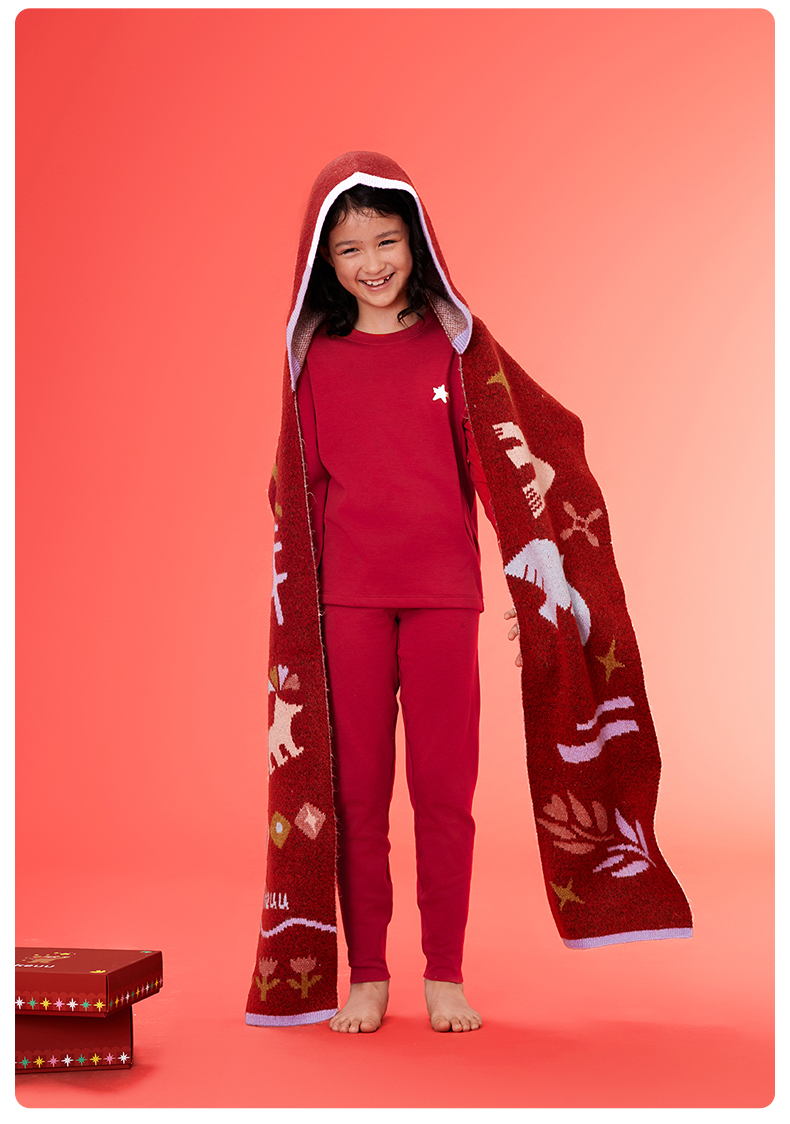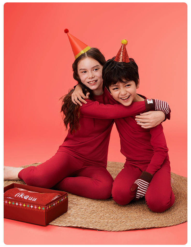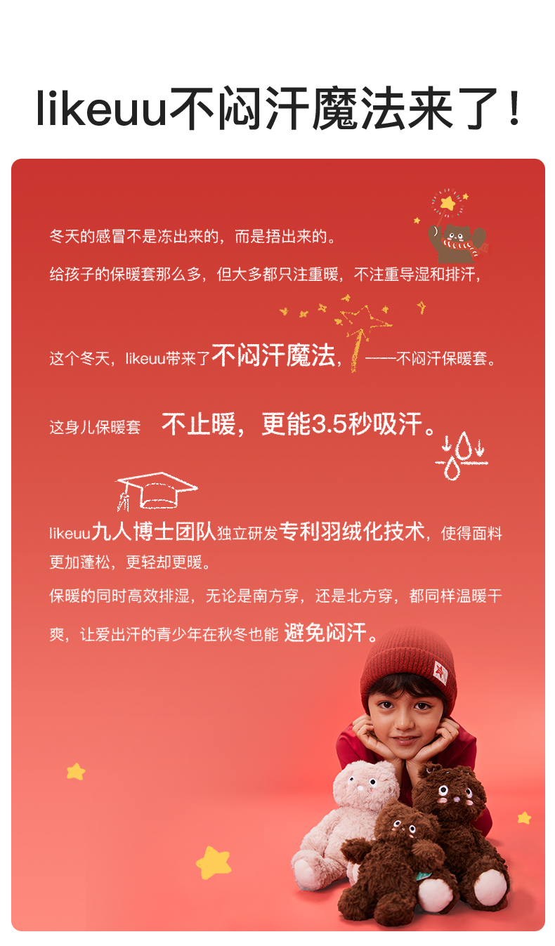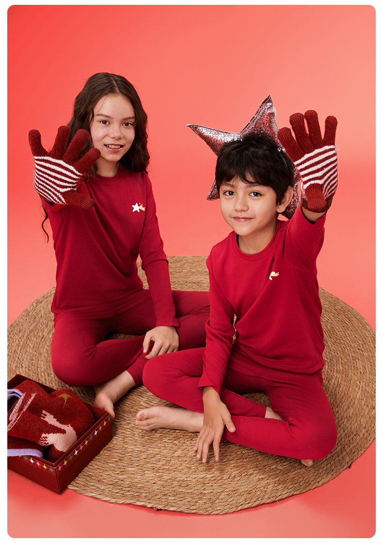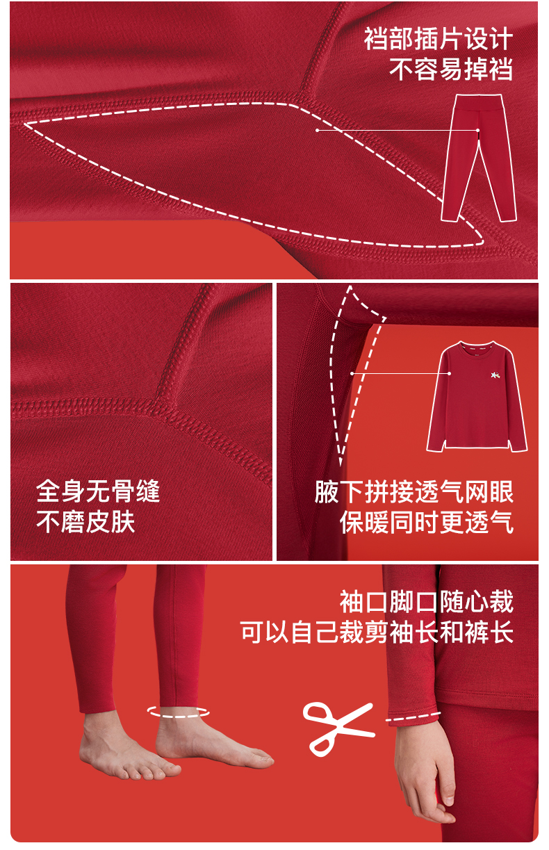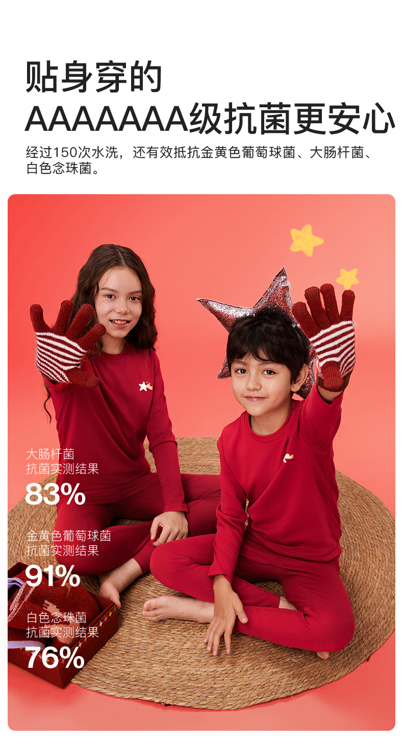 likeuu儿童本命年保暖内衣套装马年红色男女大童秋衣裤睡衣新年dr