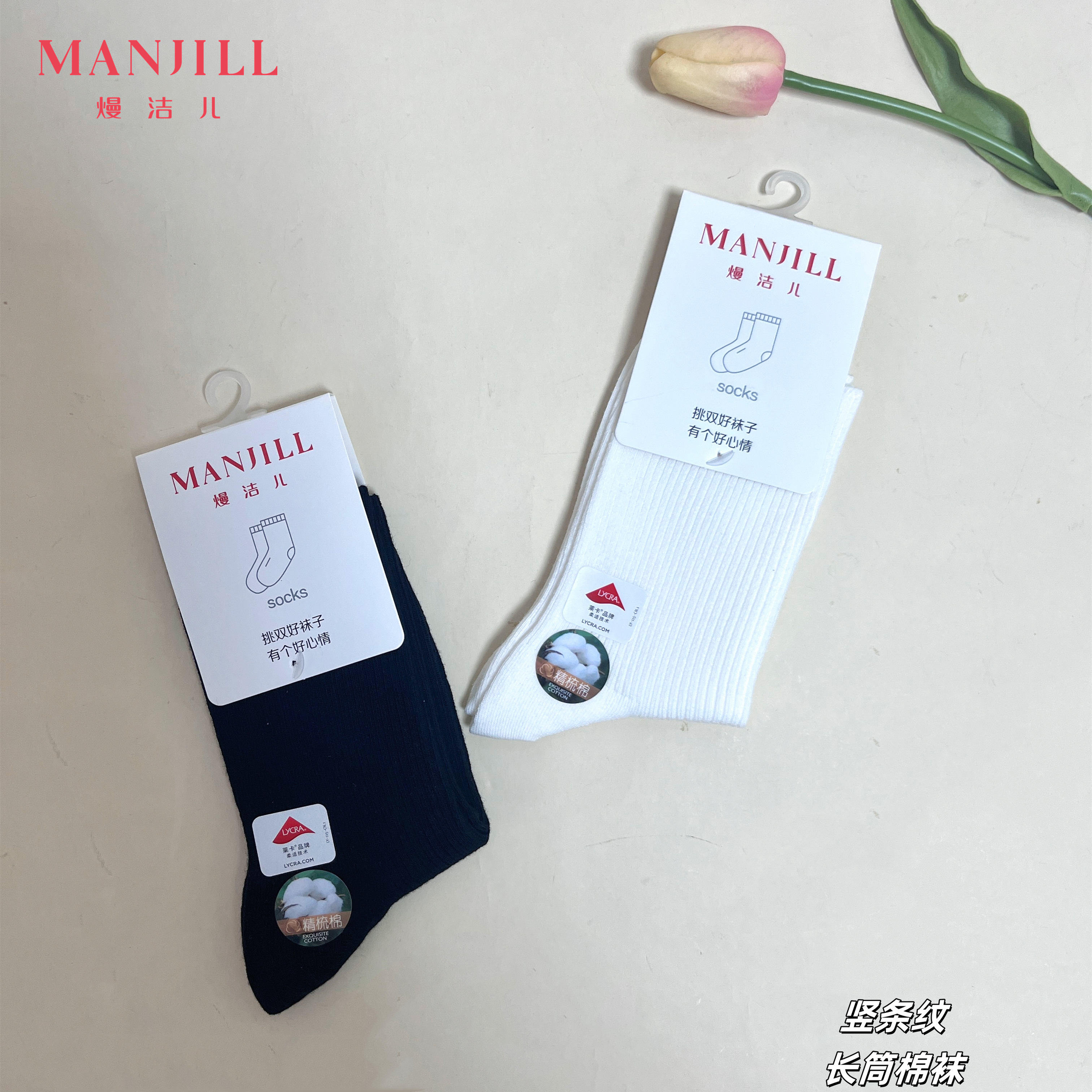 【拍3双29元】熳洁儿 女士长筒袜棉竖条精梳棉24714202