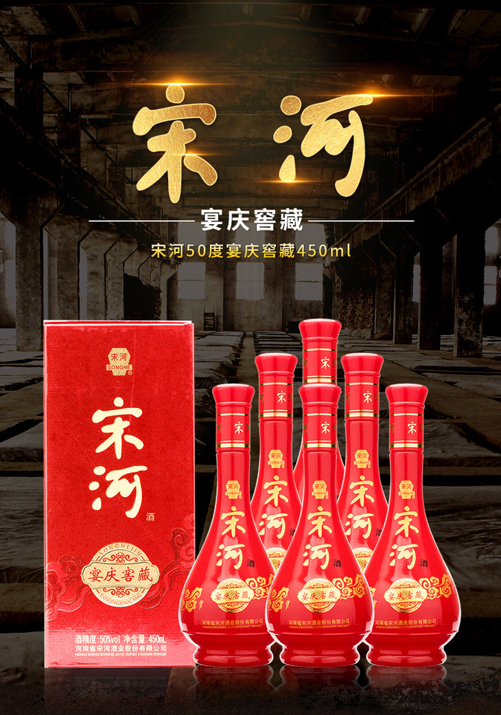 宋河酒50度白酒宴庆窖藏450ml/1瓶/2瓶/6瓶整箱
