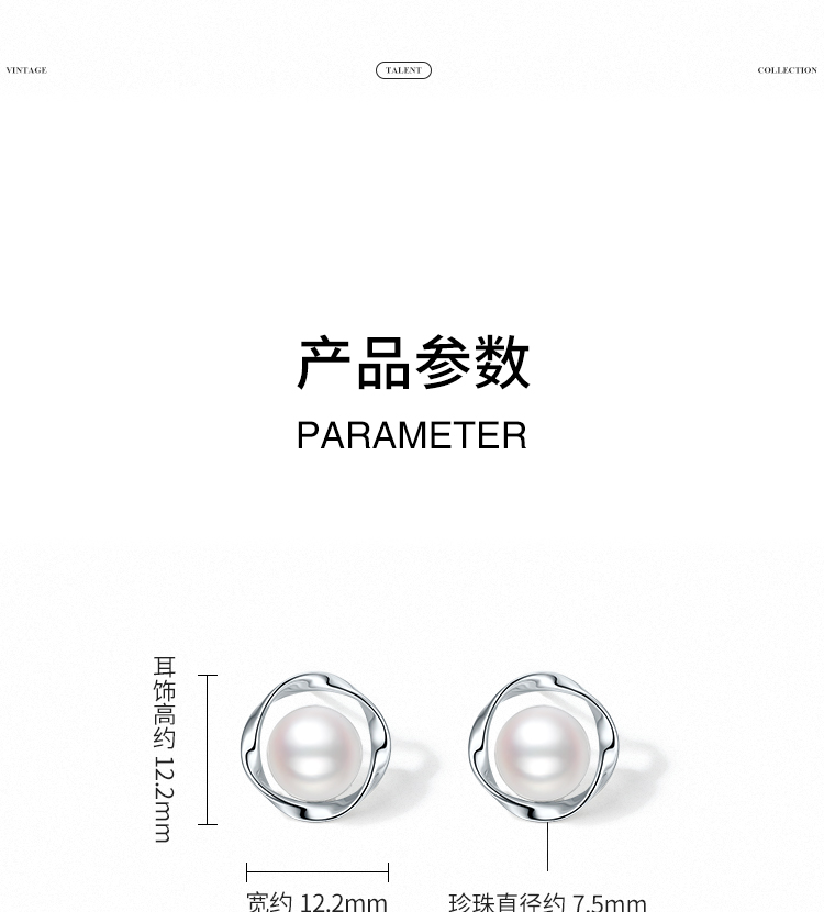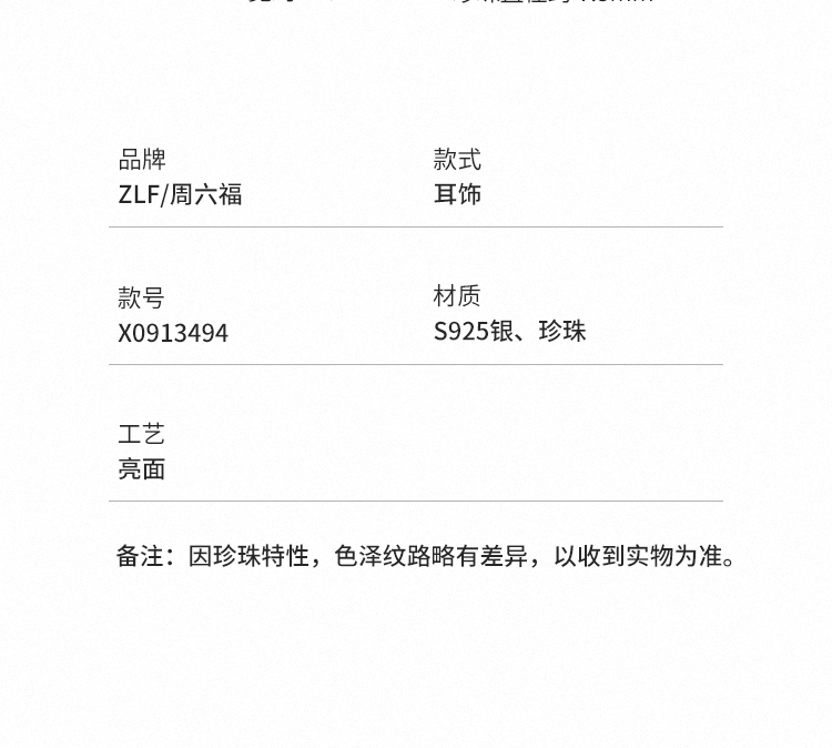 周六福淡水珍珠耳饰女S925银莫比乌斯环耳钉优雅送女友节日礼物
