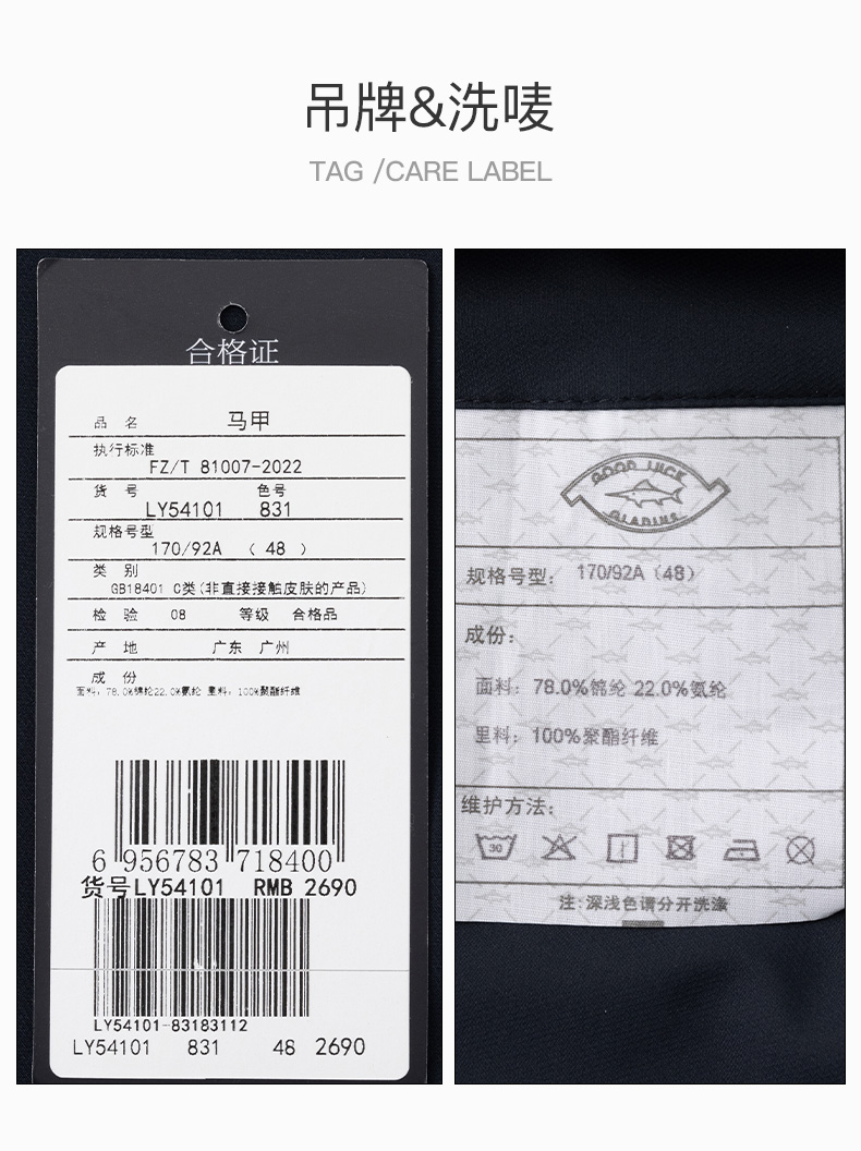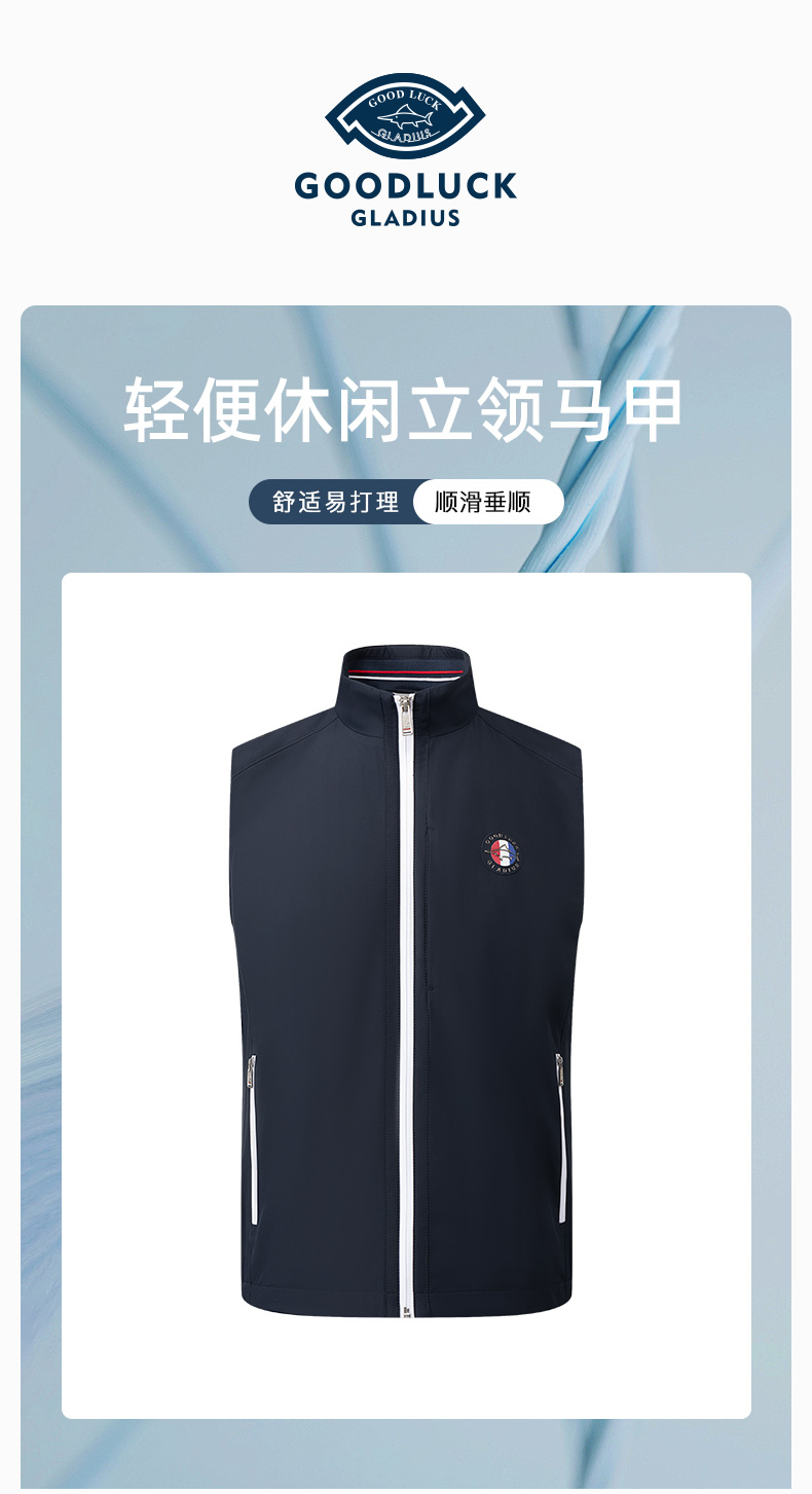 【高弹】德鲨鲨鱼白色立领马甲男2026春夏款休闲上衣无袖薄款外套