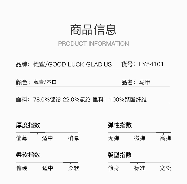 - GOOD LUCK GLADIUS品牌由“浙江德鲨服饰有限公司”引进中国市场,经过多年发展,凭借完善的终端形象,规范化的销售管理,迅速赢得消费者的认可,引领国内消费流行,是成功人士首选男装品牌。