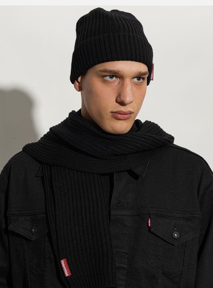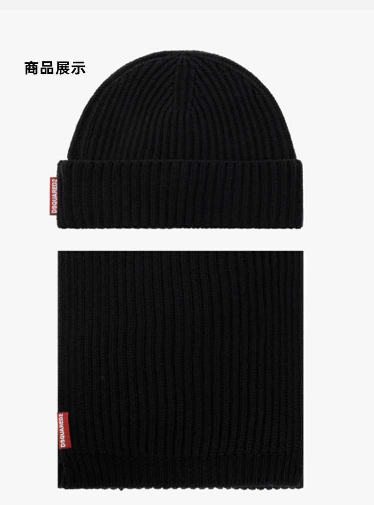 【一】DSQUARED2 男士羊毛针织帽子套装 黑色 KNM0065 01W06757 2124