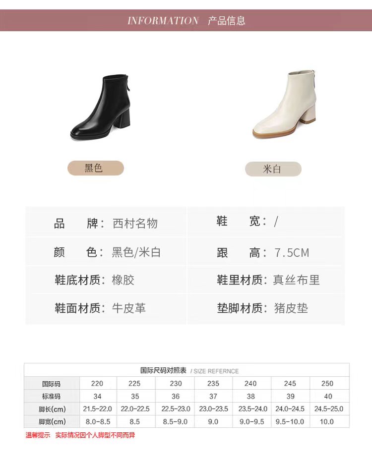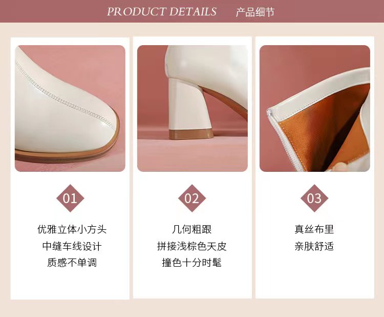 西村名物22年秋冬欧美新款方头短靴复古风粗跟休闲靴短筒高跟靴百搭女靴44901