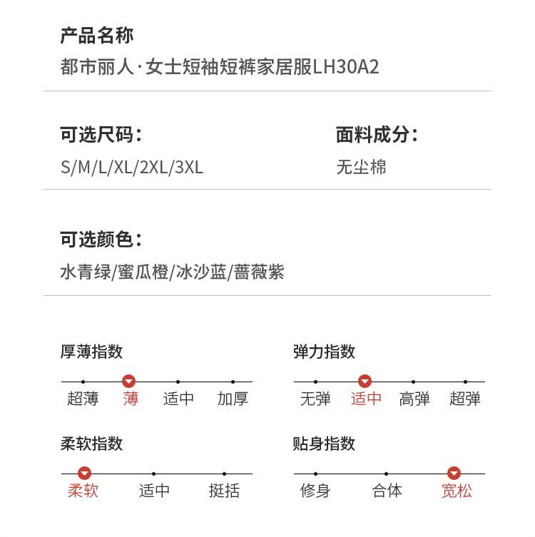 都市丽人凉感无尘棉薄短袖家居服睡衣LH30A2