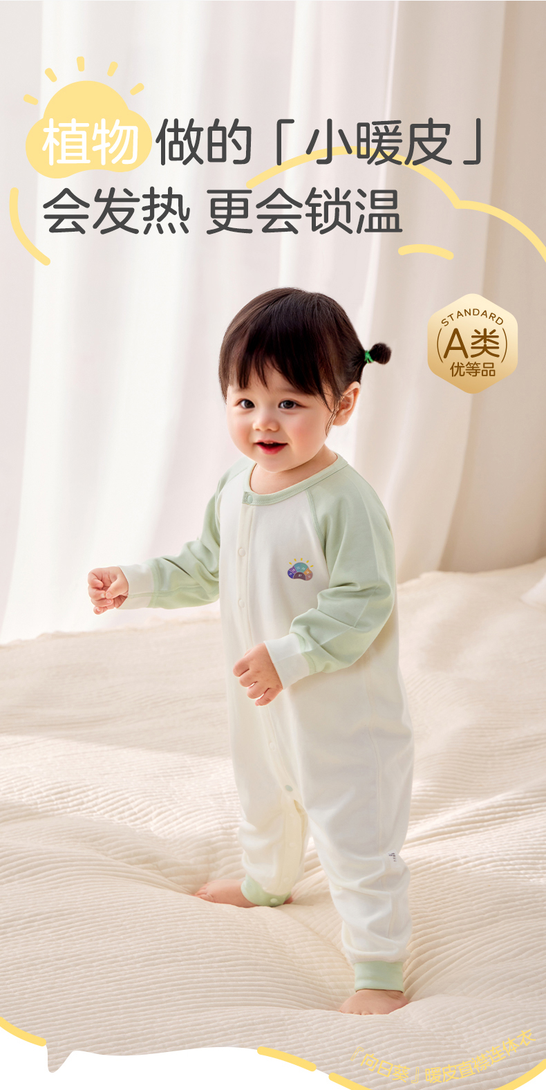 粒粒阳光秋季婴儿衣服向日葵暖皮恒温连体衣2025宝宝衣服