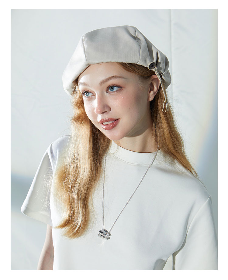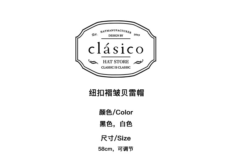 clasico/CLBE143/纽扣褶皱贝雷帽