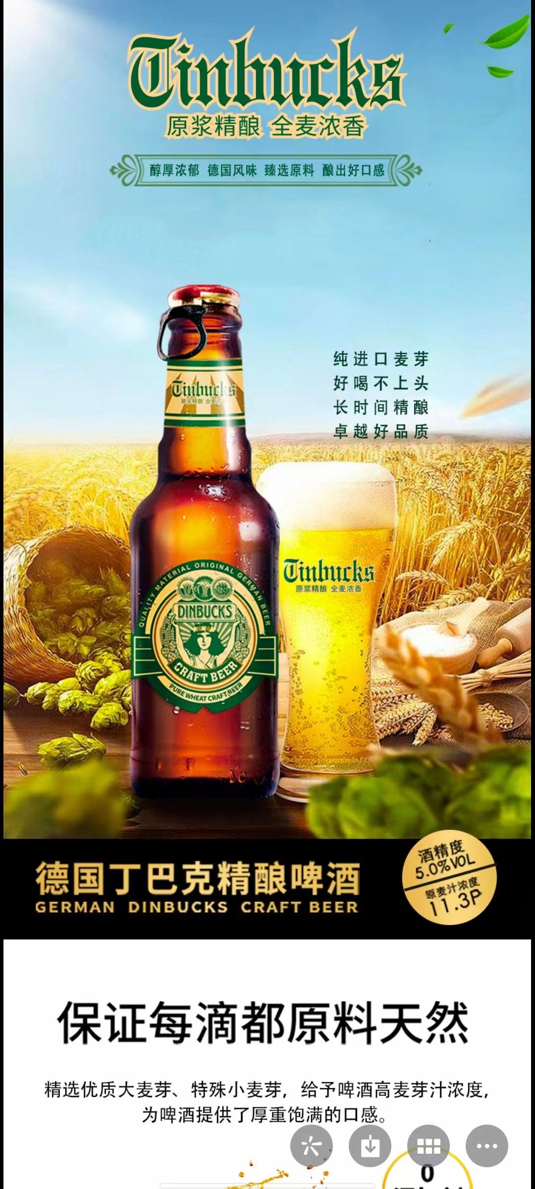 丁巴克精酿啤酒/1箱(228ml*24瓶)生产日期:26年3月