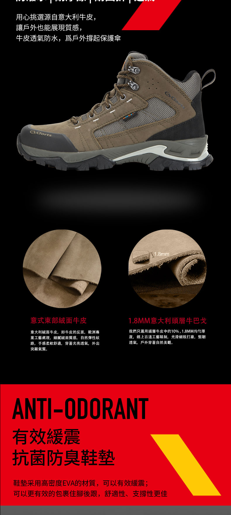 洛弛红 高帮户外徒步防滑耐磨登山鞋3B046