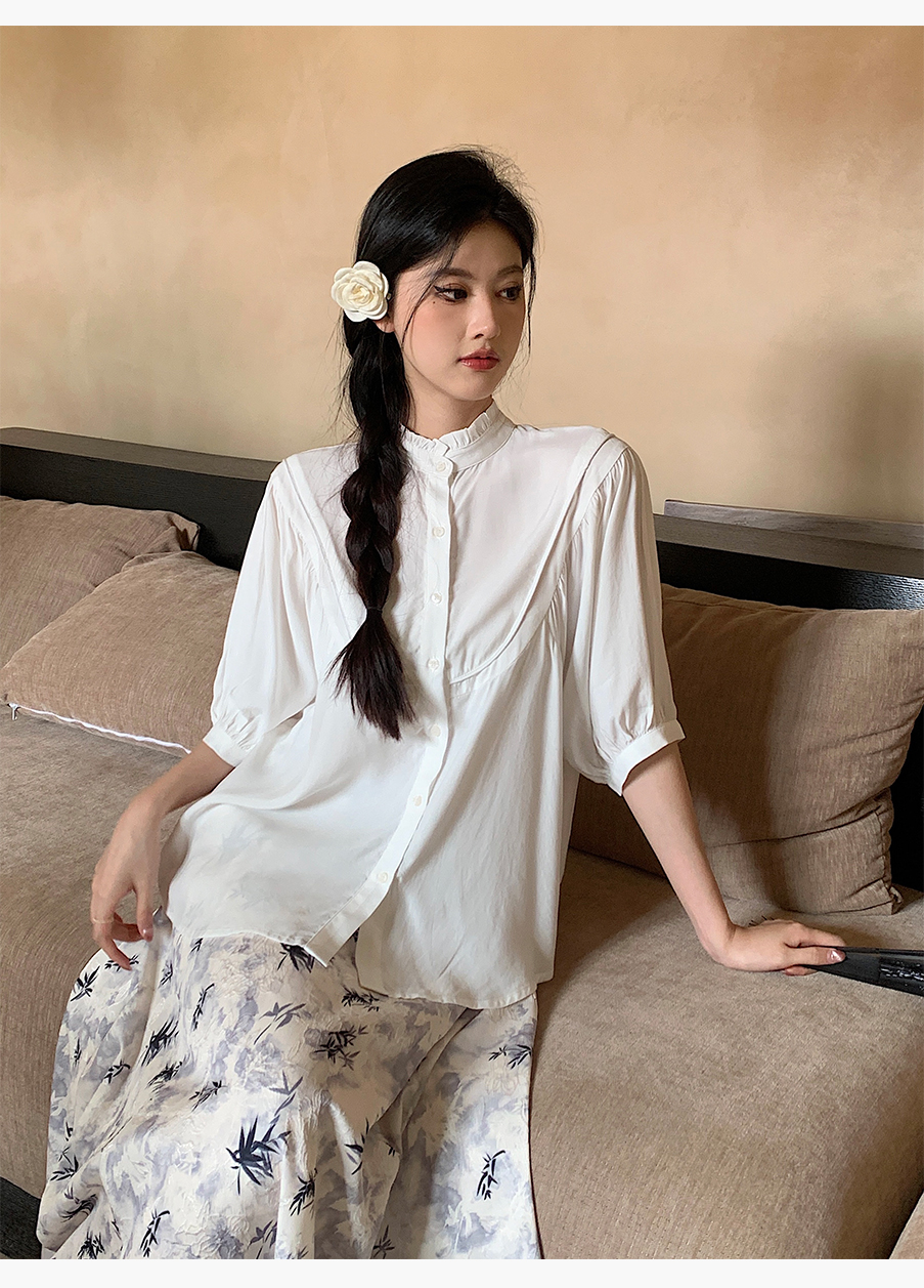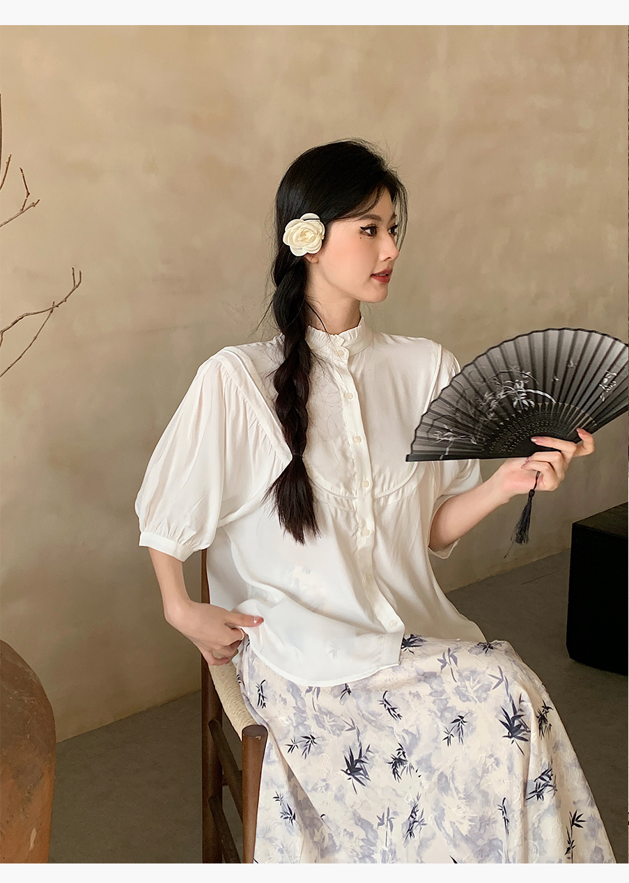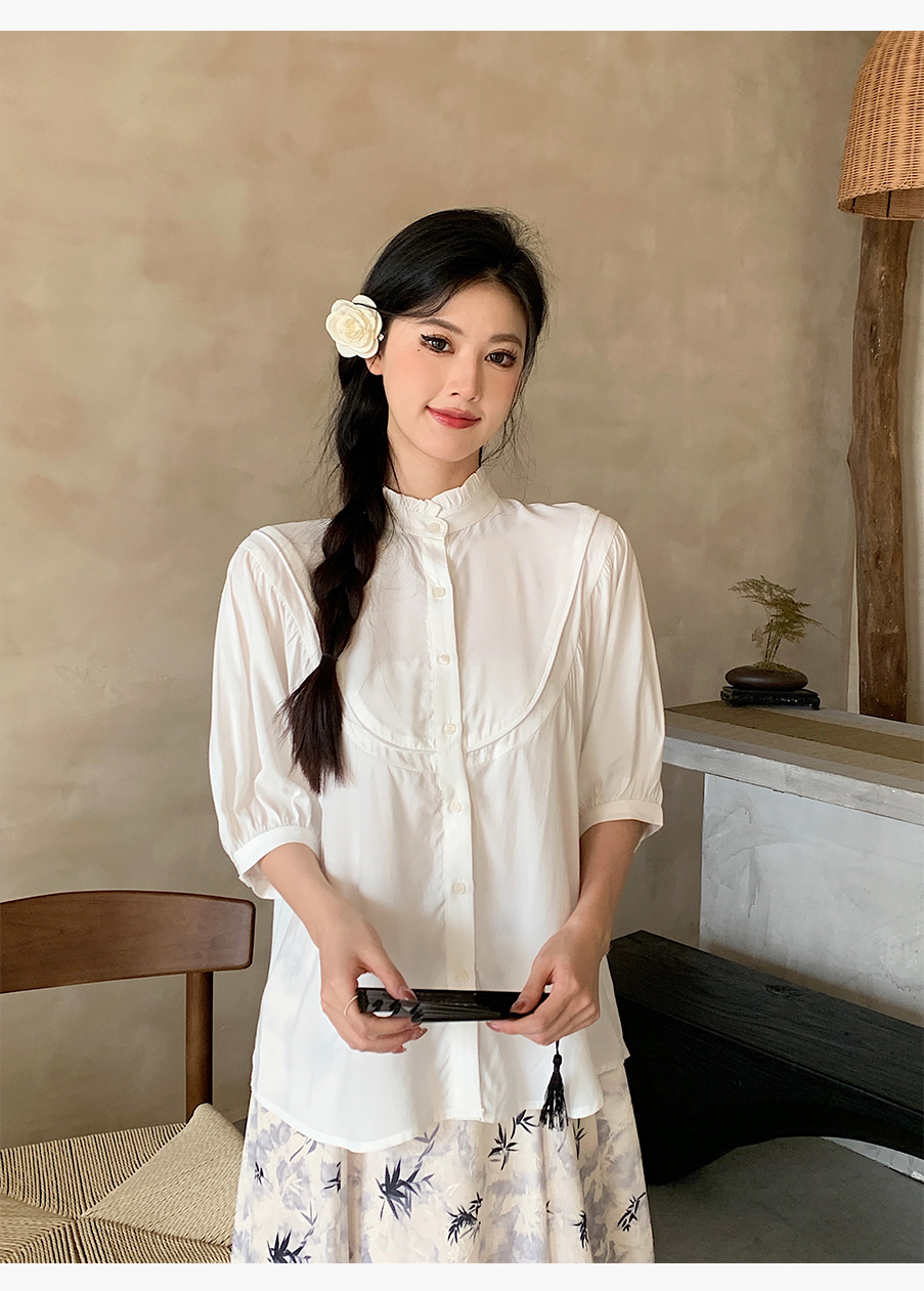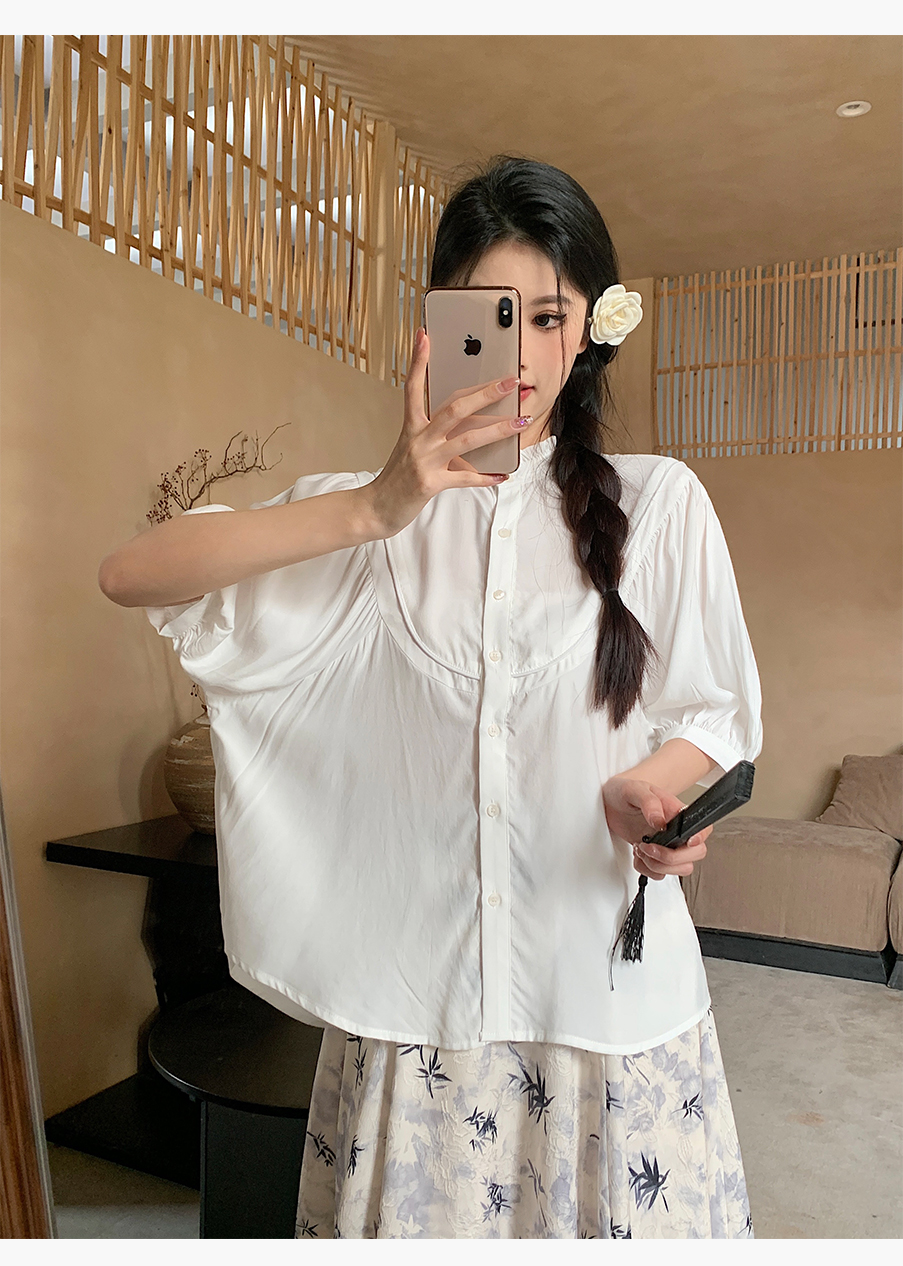 P&X设计师女装夏季 复古法式百搭国风短款衬衫 824205293 白色