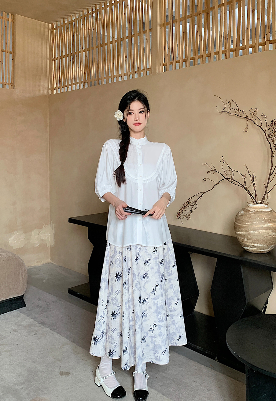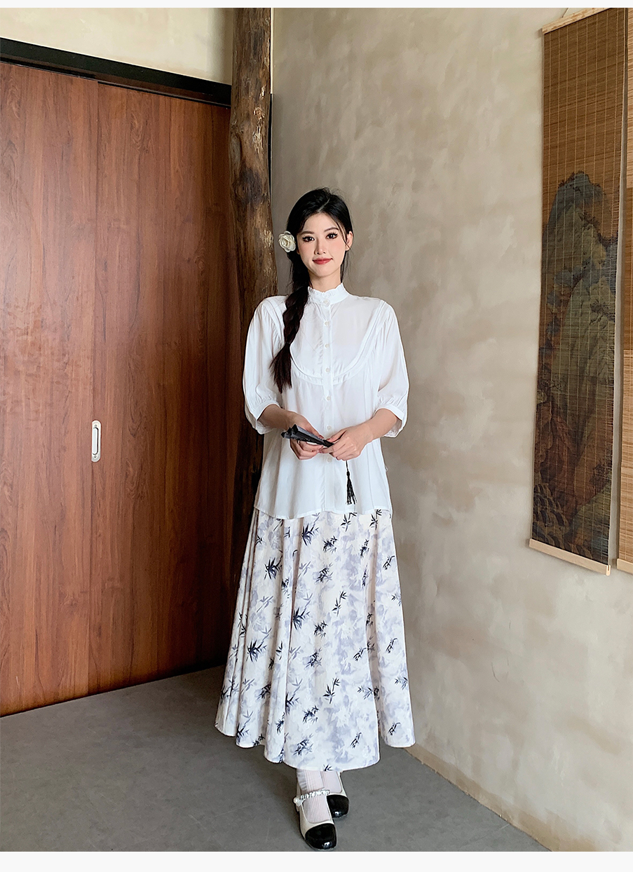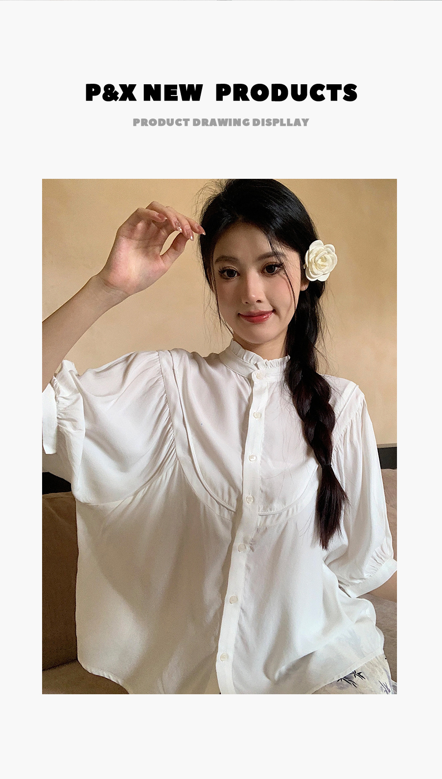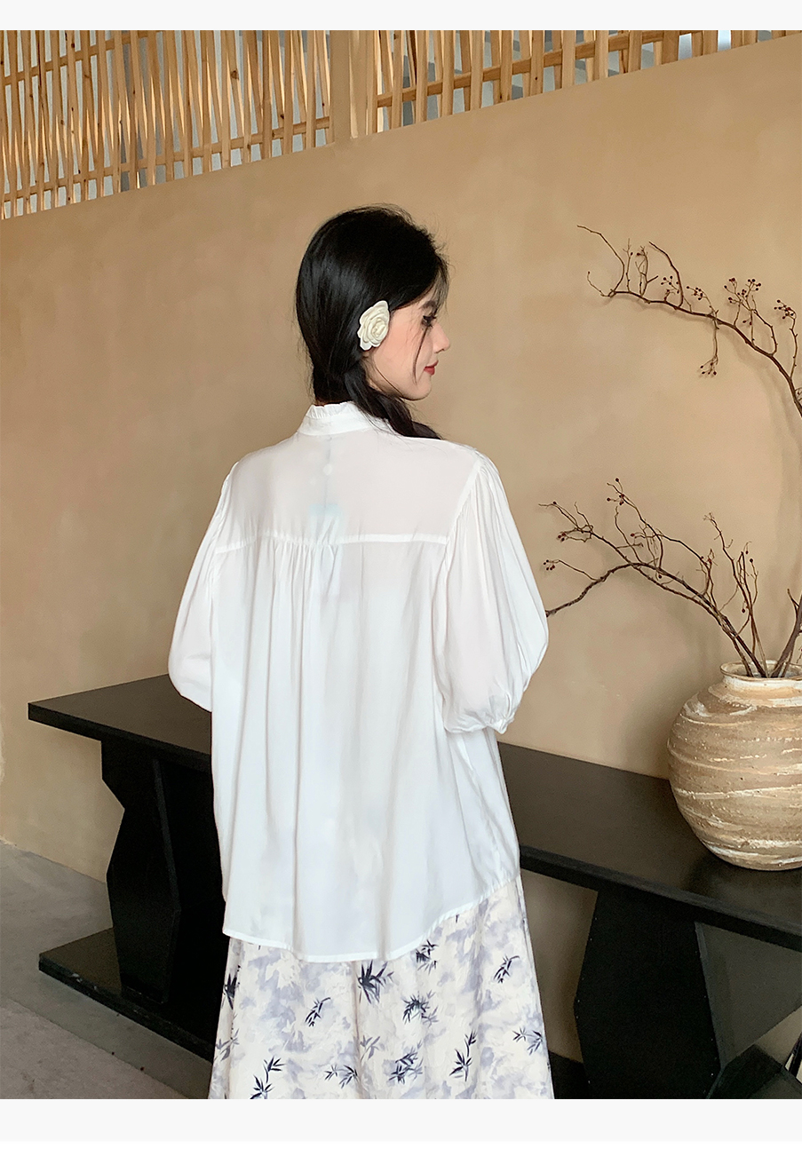 P&X设计师女装夏季 复古法式百搭国风短款衬衫 824205293 白色