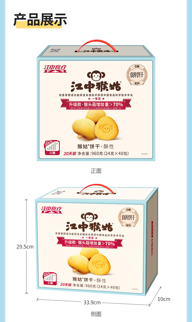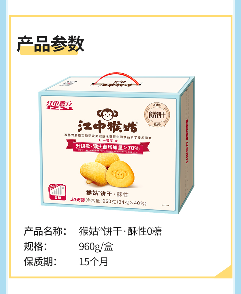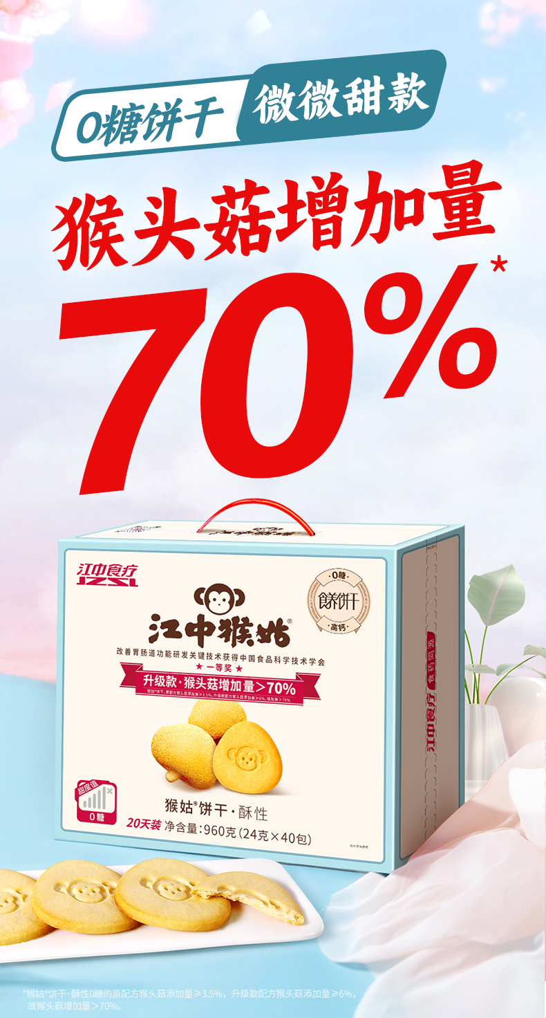【积分兑换】江中猴姑猴头菇0糖微微甜酥性20天装【礼盒】 40小包/960g/盒 猴头菇添加量≥6% 高钙低糖 新日期/保质期15个月