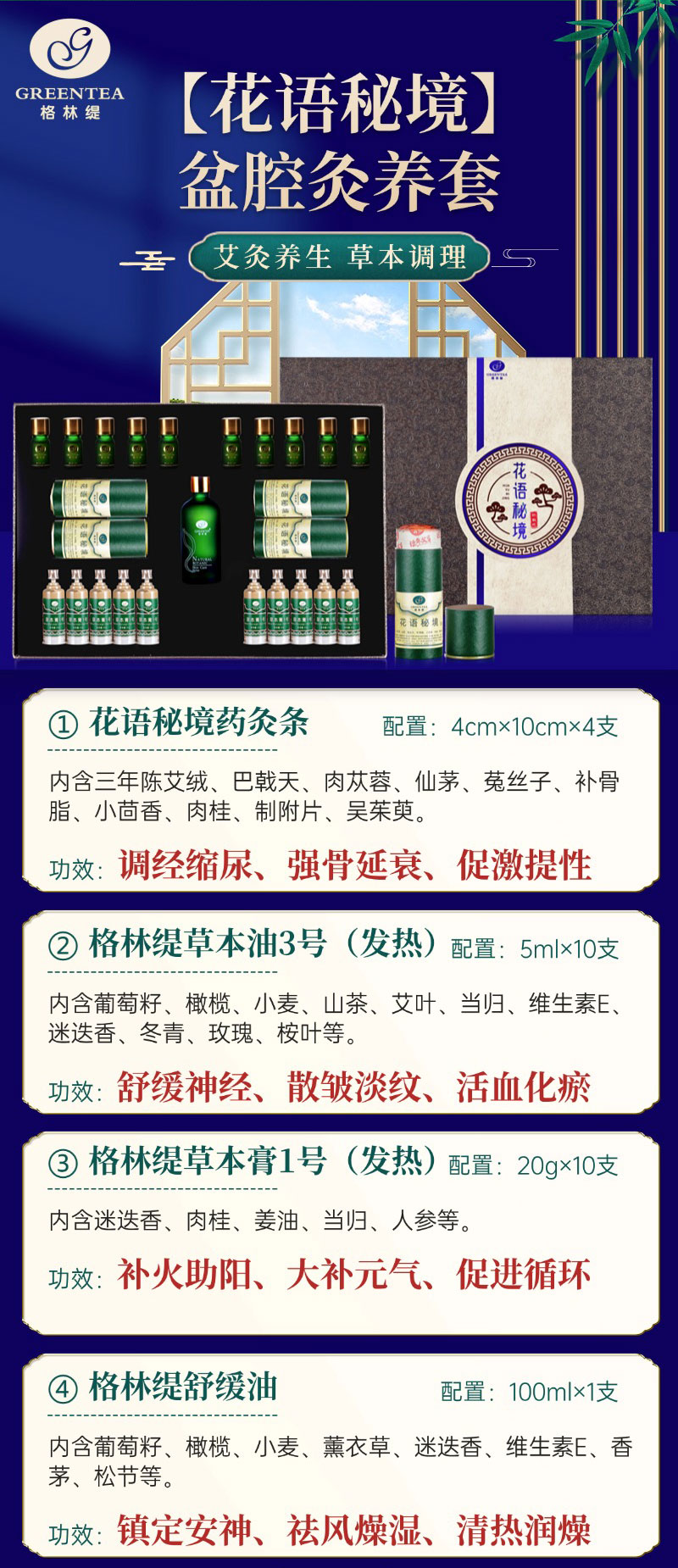 盆腔套盒【格林缇】花语秘境【艾灸】盆腔修复产后骨盆恢复盆骨矫正卵巢子宫药油护理
