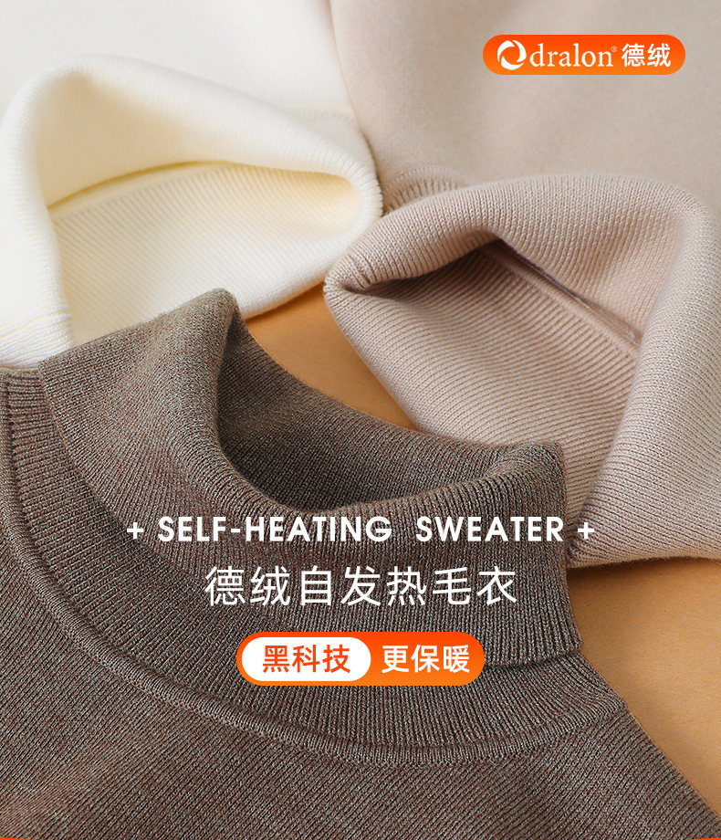 墨麦客男装2021秋季新款可翻高领毛衣男士德绒自发热打底衫20005