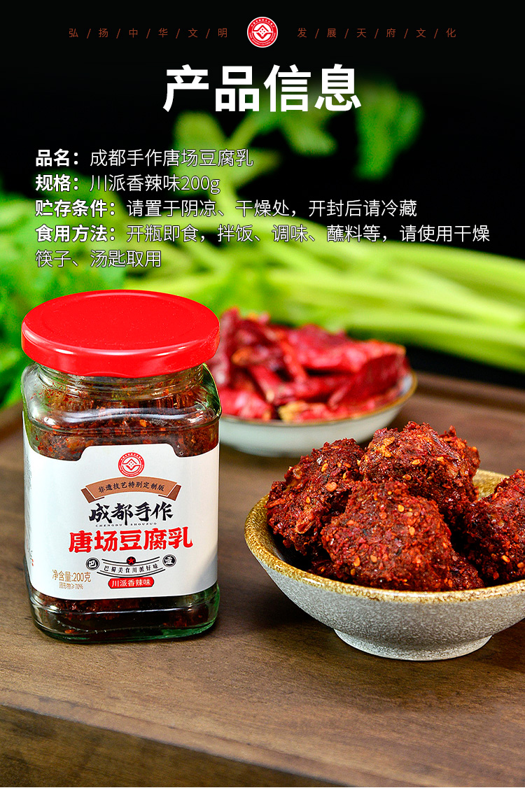 【唐场豆腐乳】成都手作非遗美食豆腐乳 手工匠制腐乳霉豆腐下饭菜 川派香辣味2瓶装/4瓶装可选【四川特产】【非遗技艺】【匠心手作】