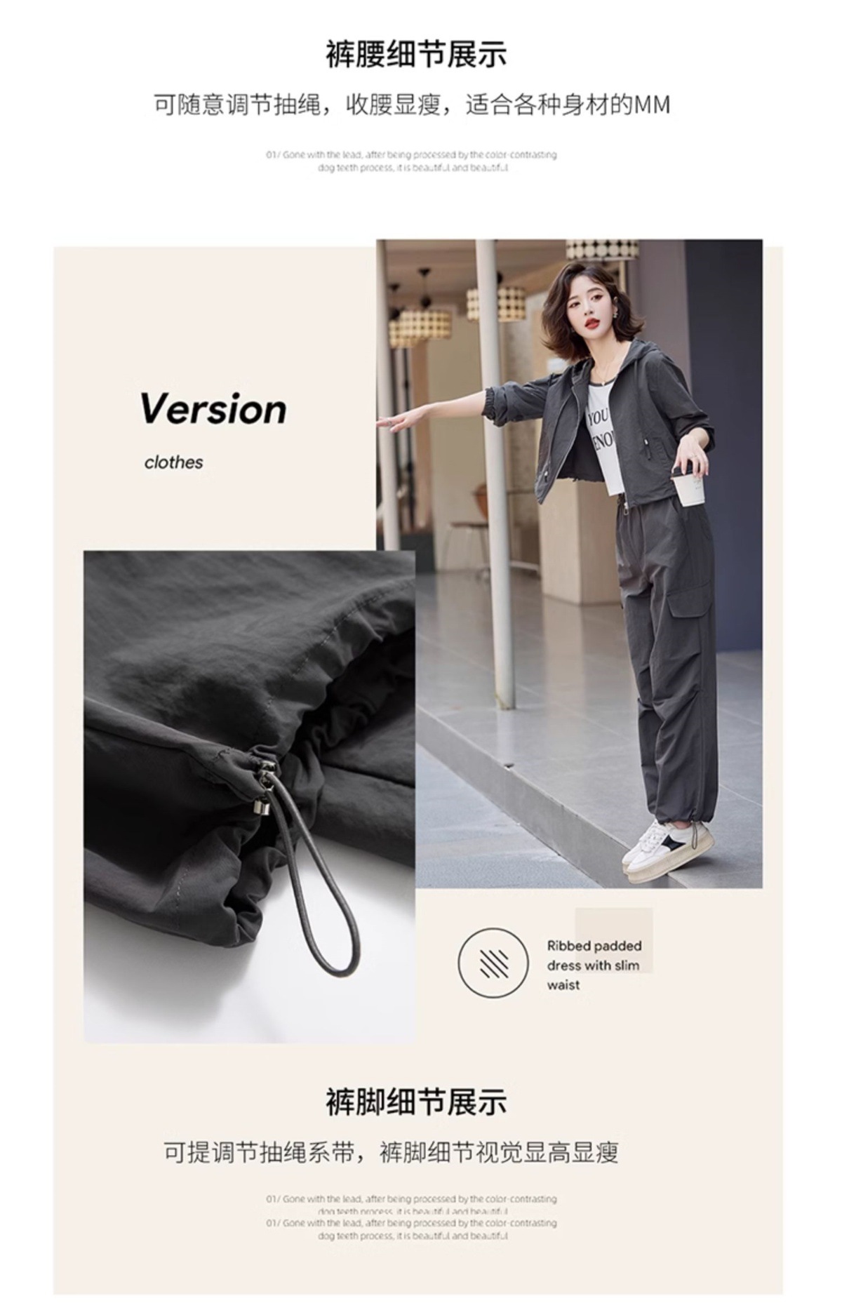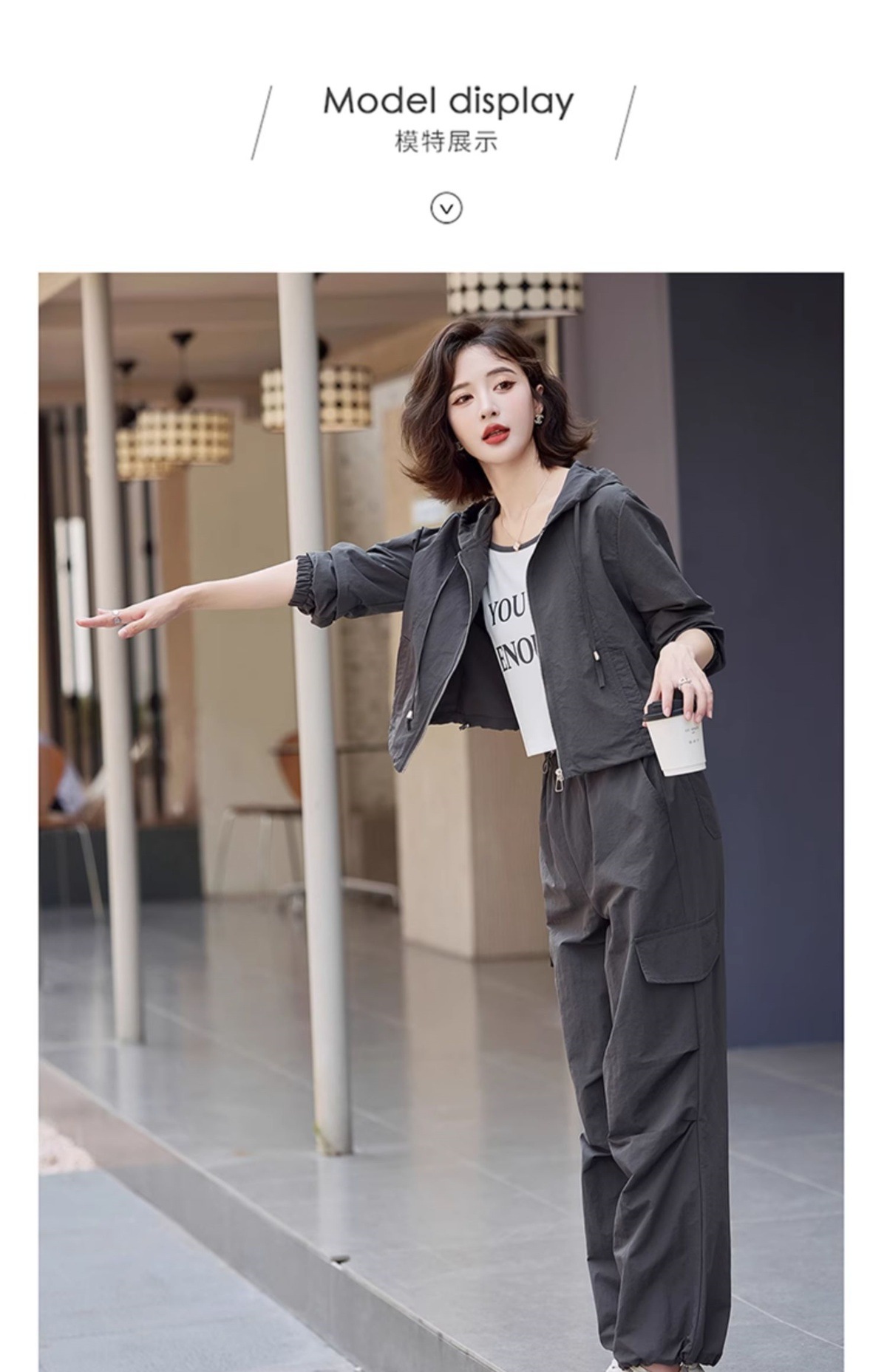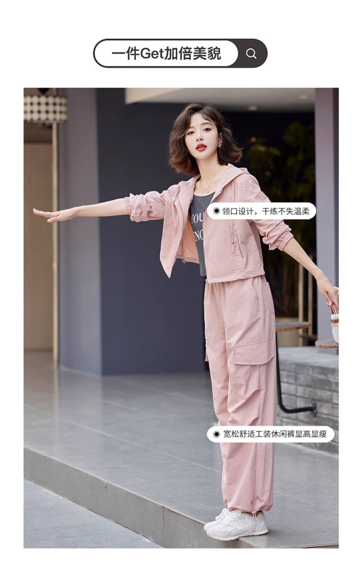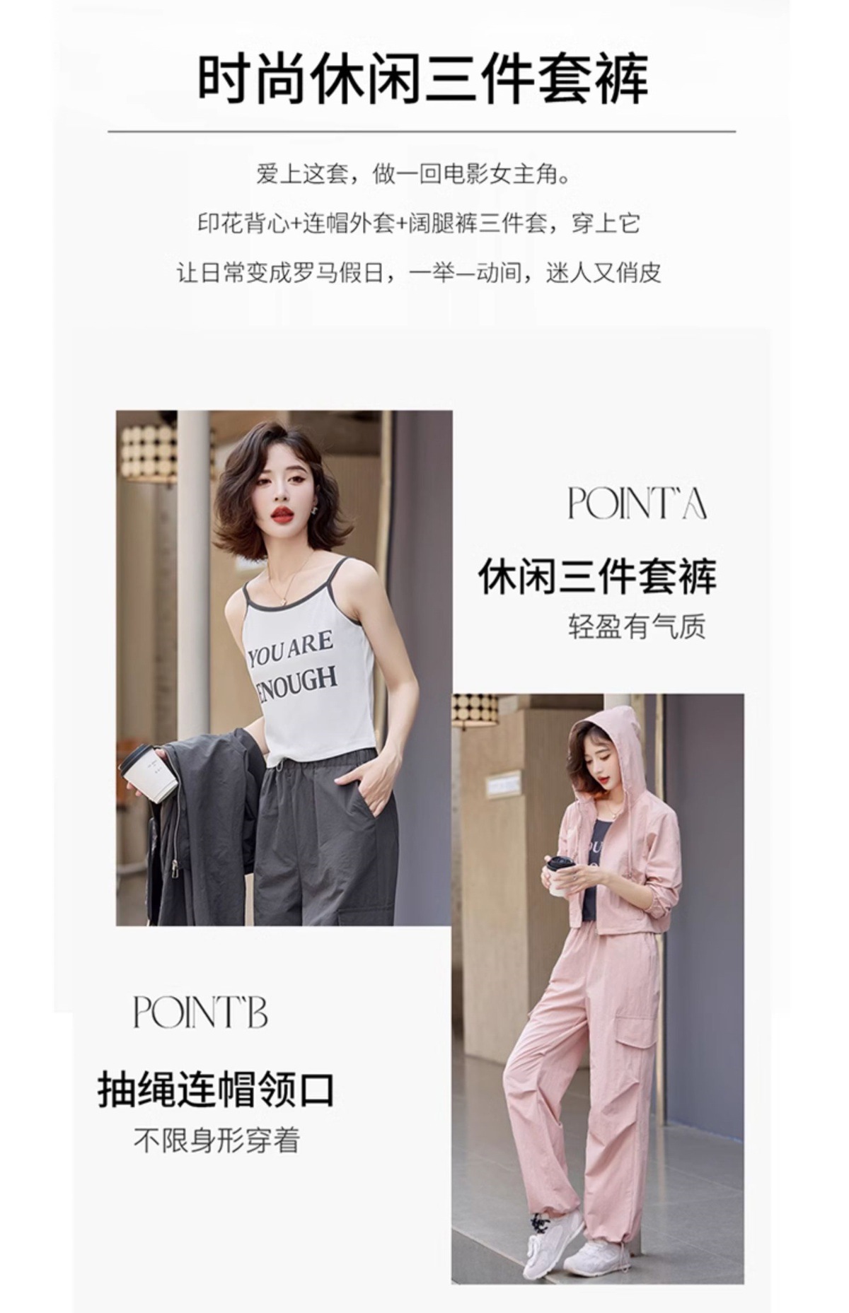 酷飒风时尚休闲运动套装,小个子洋气炸街工装三件套HR-YLFS8935