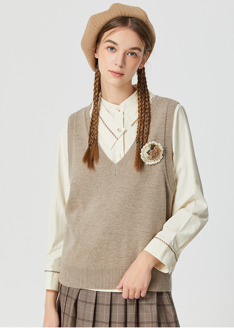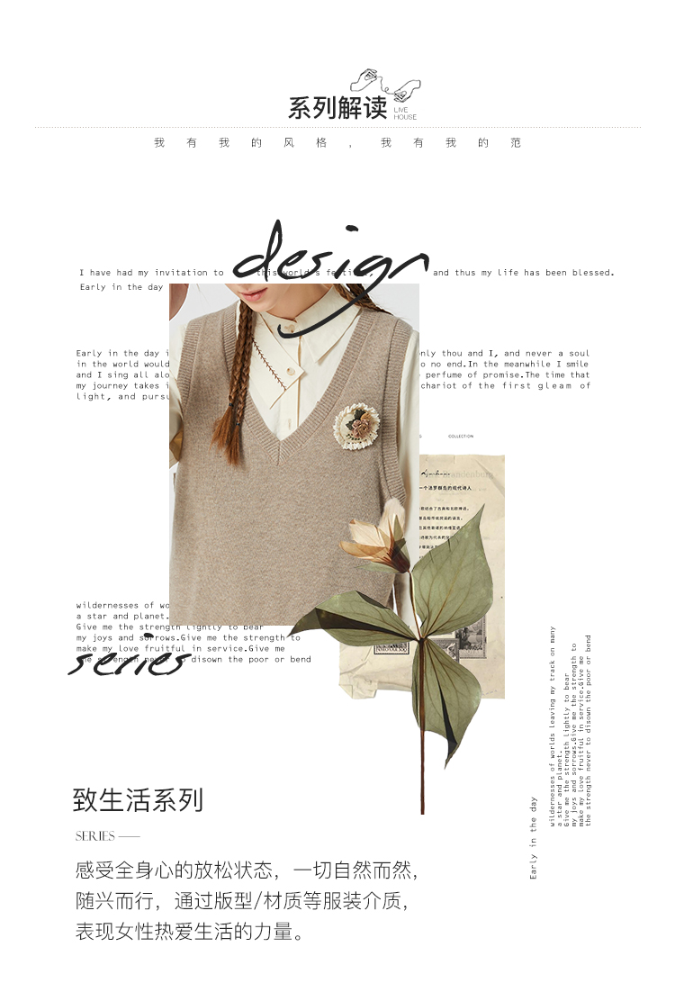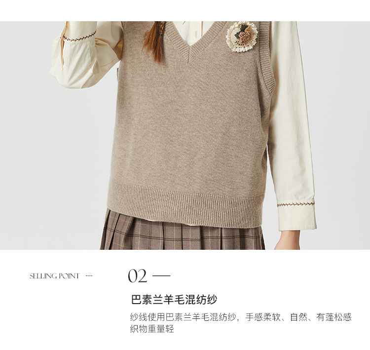 Famecoco范可儿羊毛针织马甲背心女春秋V领无袖叠穿毛衣坎肩纯色F225CA023