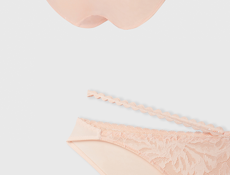 好奇蜜斯无痕蕾丝内衣女小胸聚拢无钢圈文胸罩套装26夏薄防下垂白-米奥