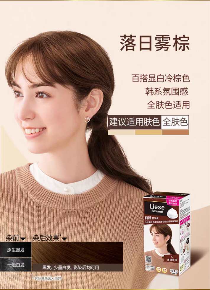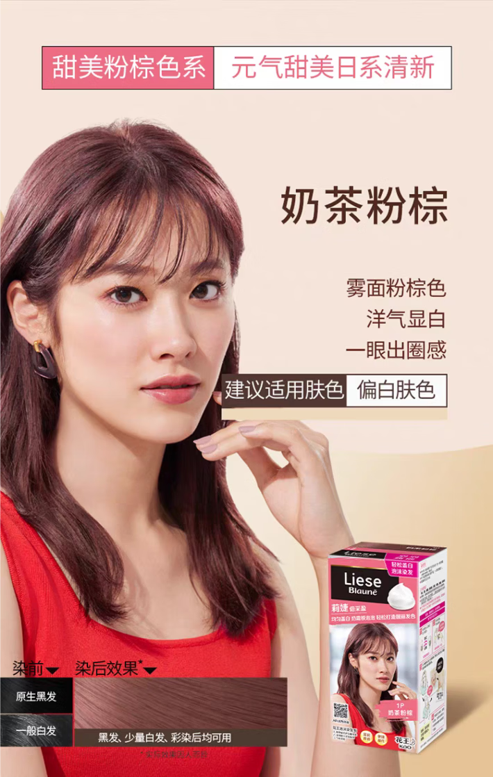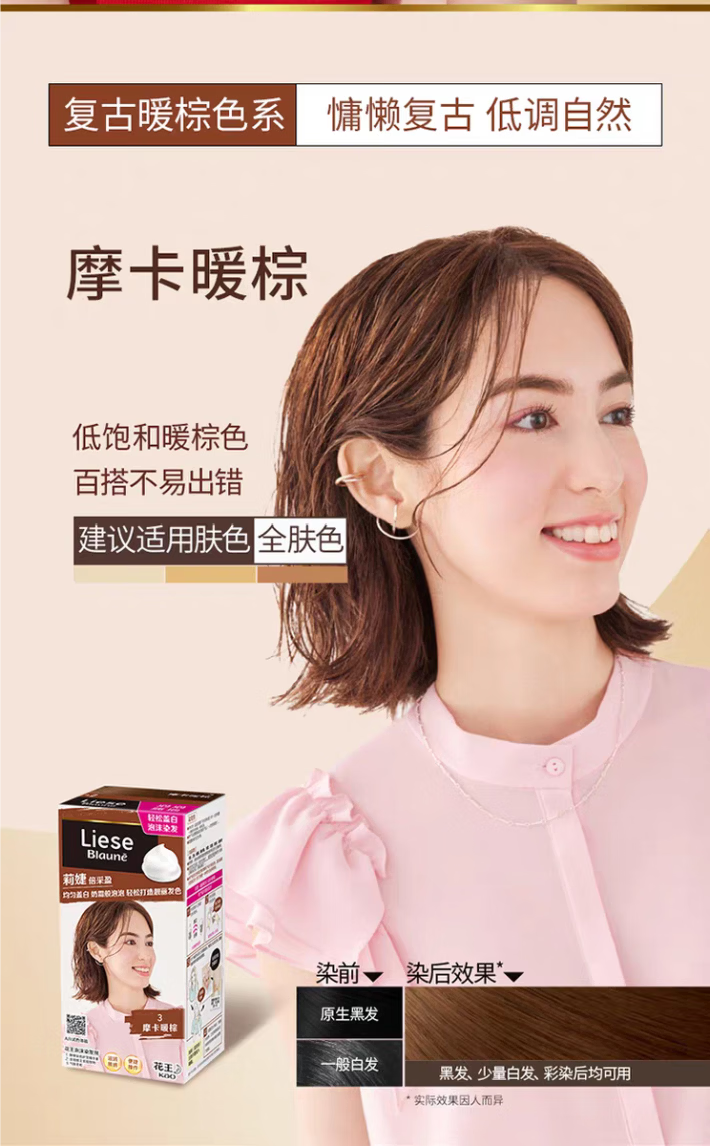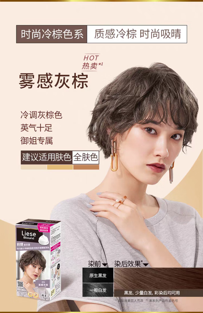 花王Liese莉婕泡泡染发剂泡沫染发膏遮白发盖白染发-黑茶深棕 108ml