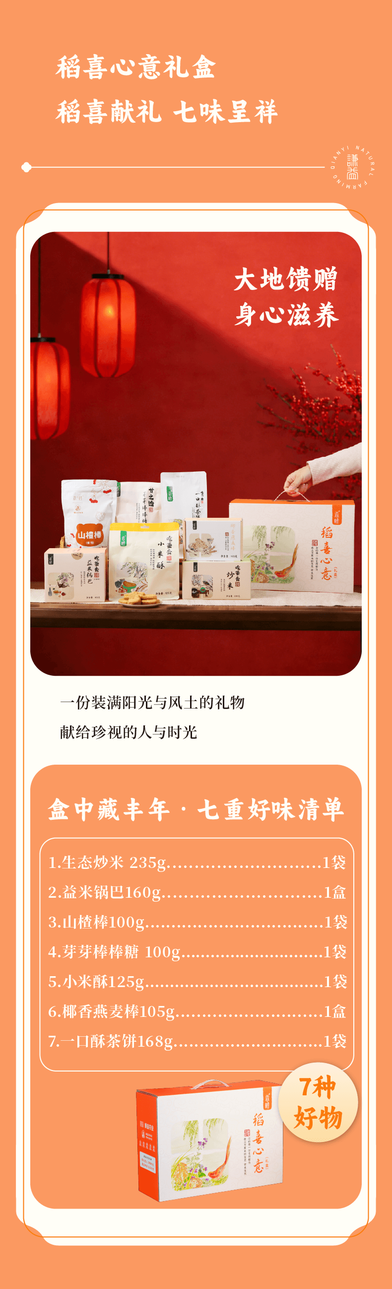 【谦益】稻喜心意礼盒(零食礼盒) 7种健康零食 993g 送礼优选
