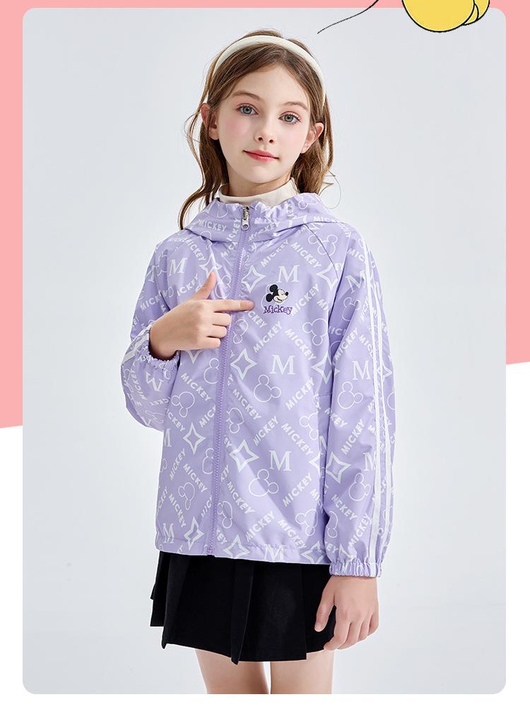 迪士尼双面穿女童外套2026春装新品童装卡通印花束袖儿童连帽上衣