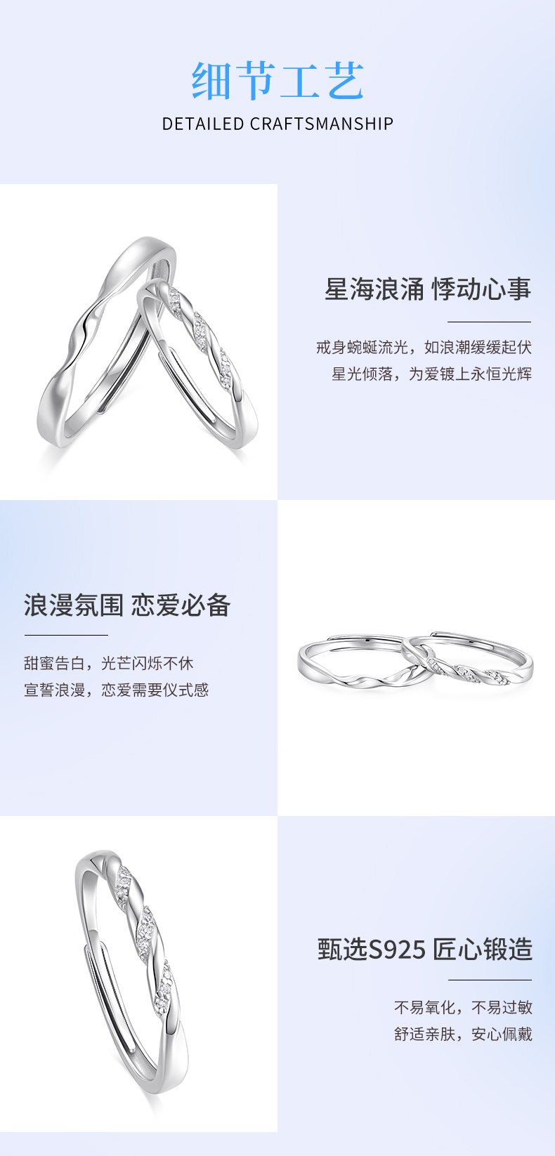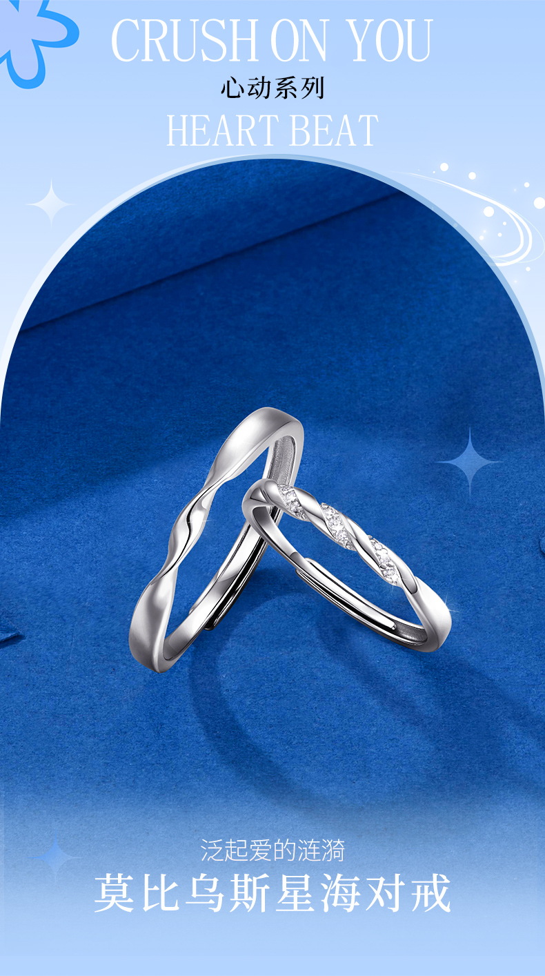 卡蒂罗/KADER 莫比乌斯星海对戒 简约浪漫爱意交织开口可调节情侣素圈一对 恋爱频率爱无止境配饰 925银