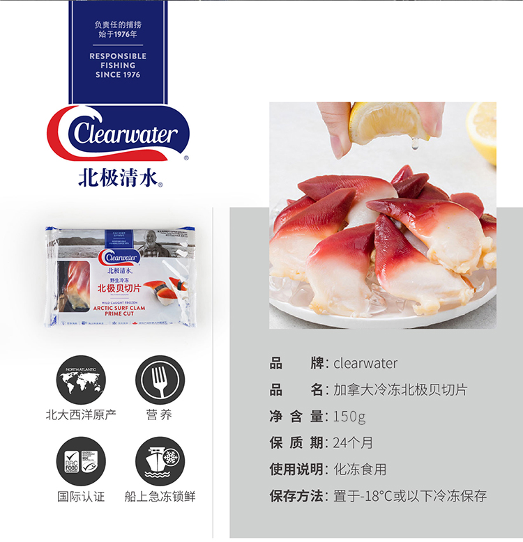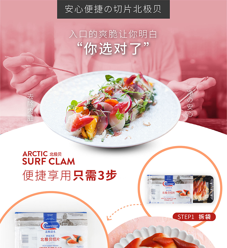Clearwater/北极清水北极贝切片100g+白玉贝切片100g+可煮冰山蚌切片150g