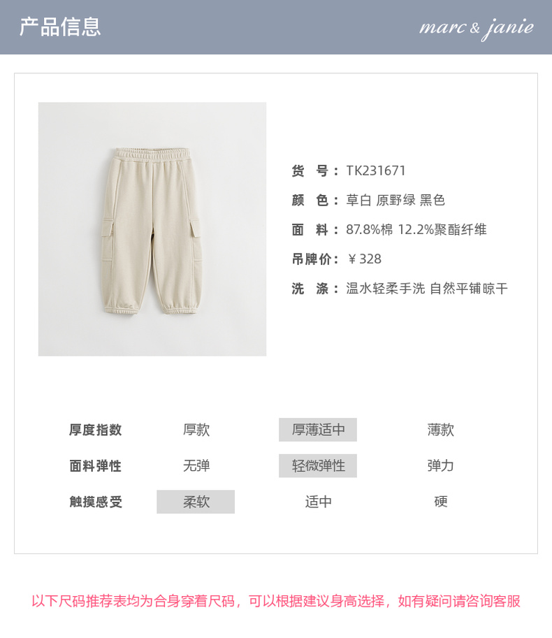 【户外风】马克珍妮秋装新款男童超舒棉大口袋束脚裤运动裤231671