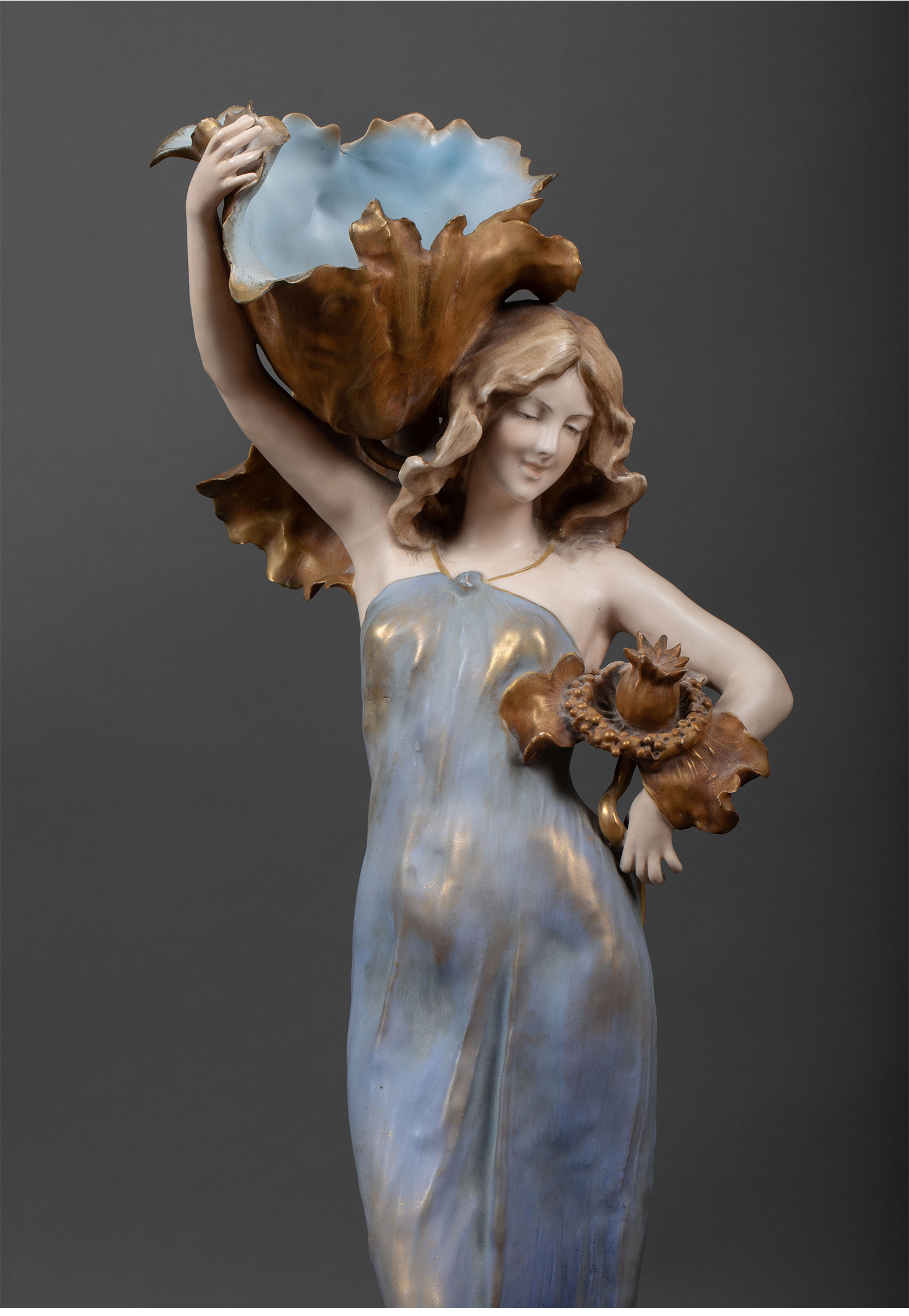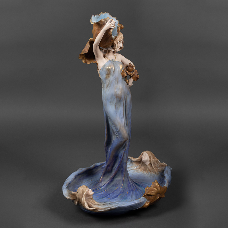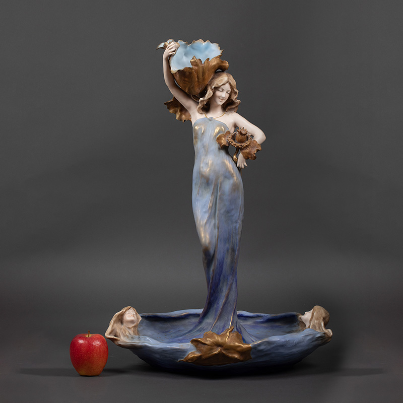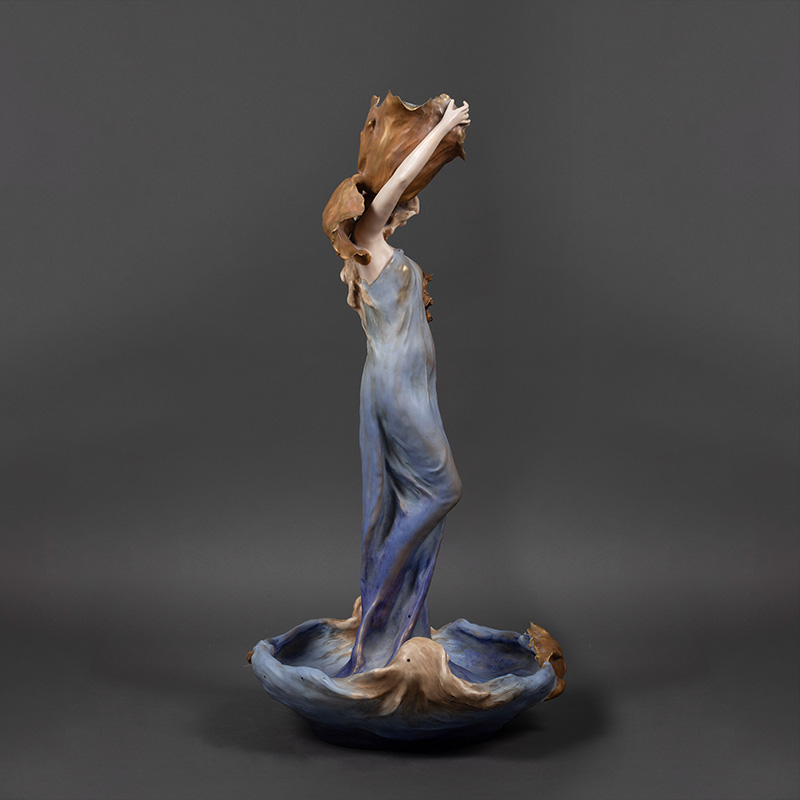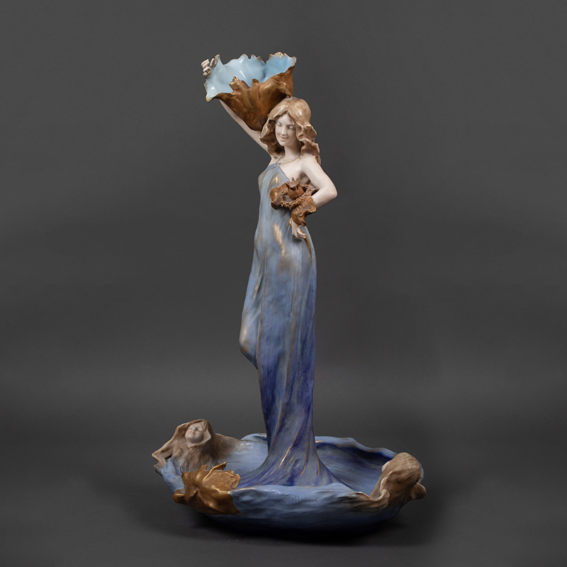 1900年代奥地利出品新艺术风格少女主题釉面陶瓷摆件