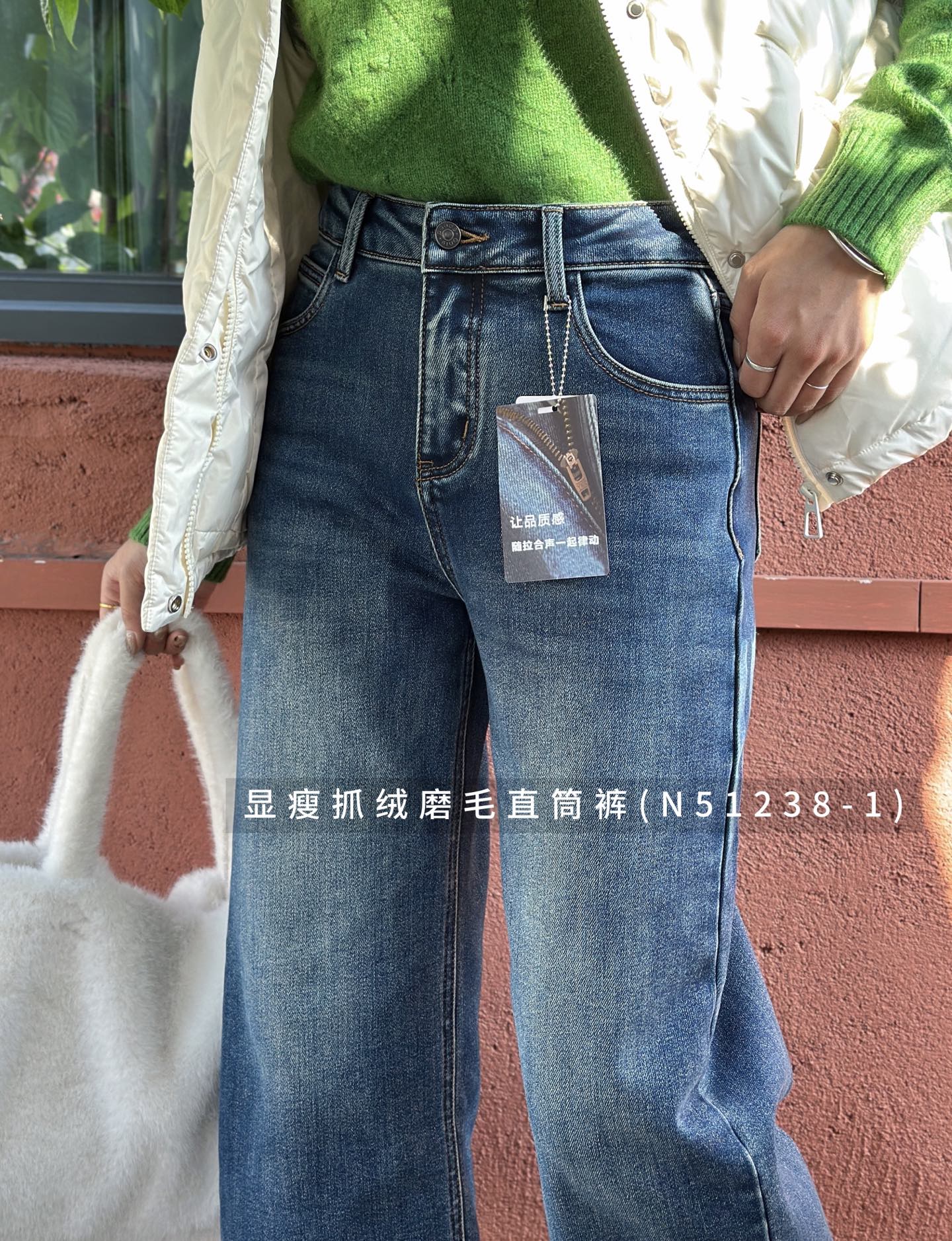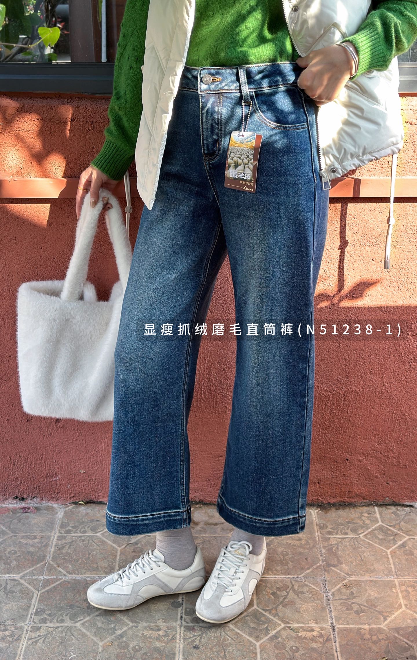 N51238-1#显瘦抓绒磨毛直筒裤