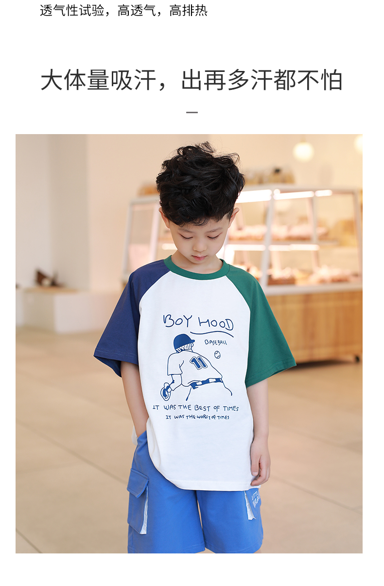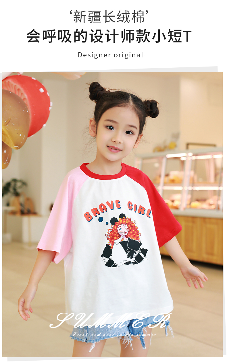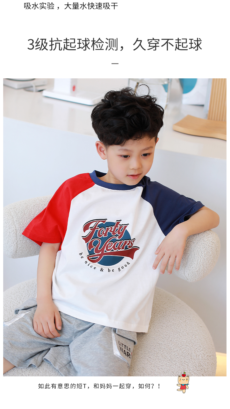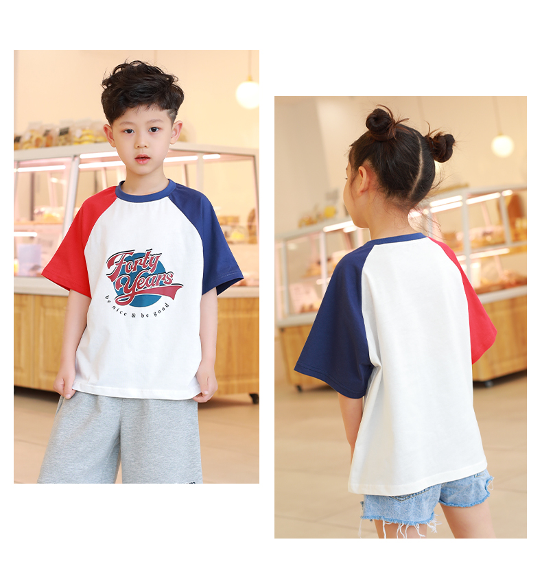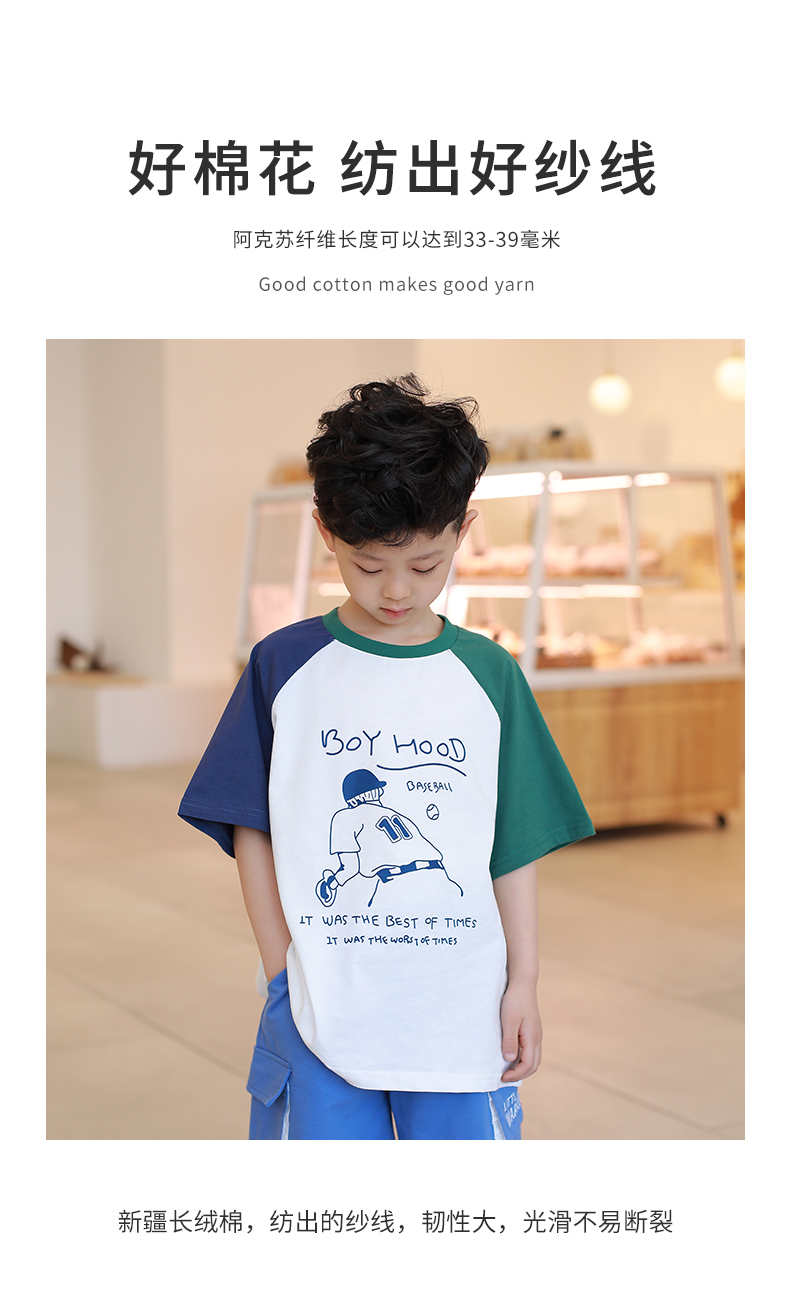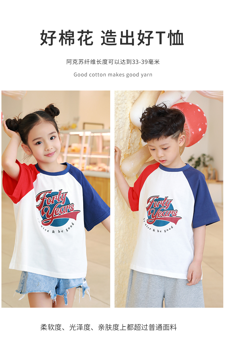 【设计师爆款】龙之涵原创插肩袖短T短袖 60S新疆长绒棉 男女中大童100-170码 运动活力感 儿童趣味印花麻感短袖T恤