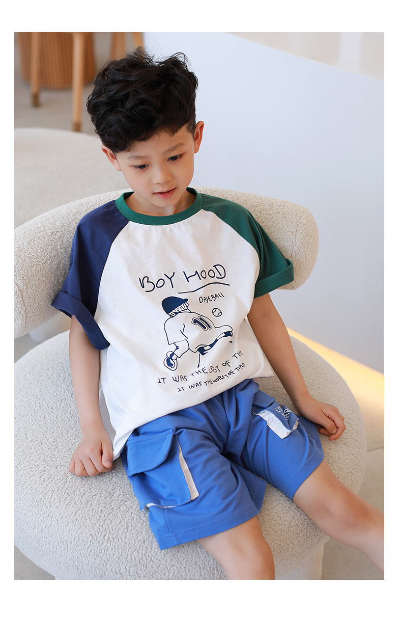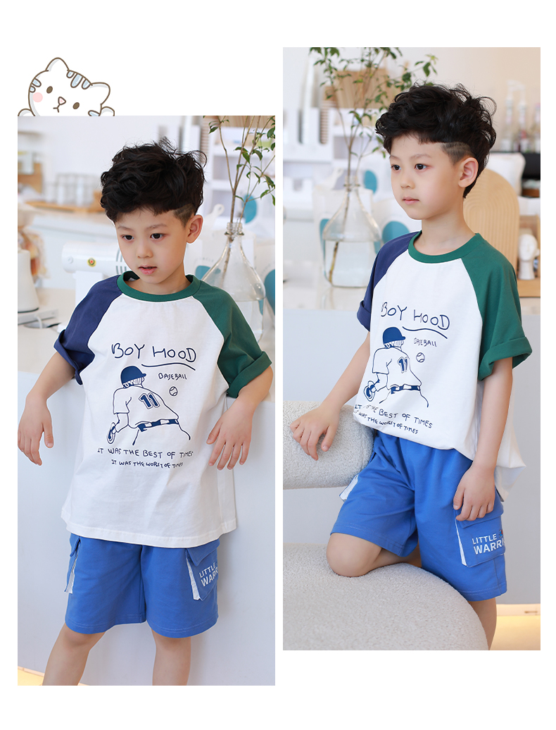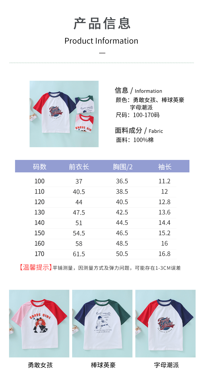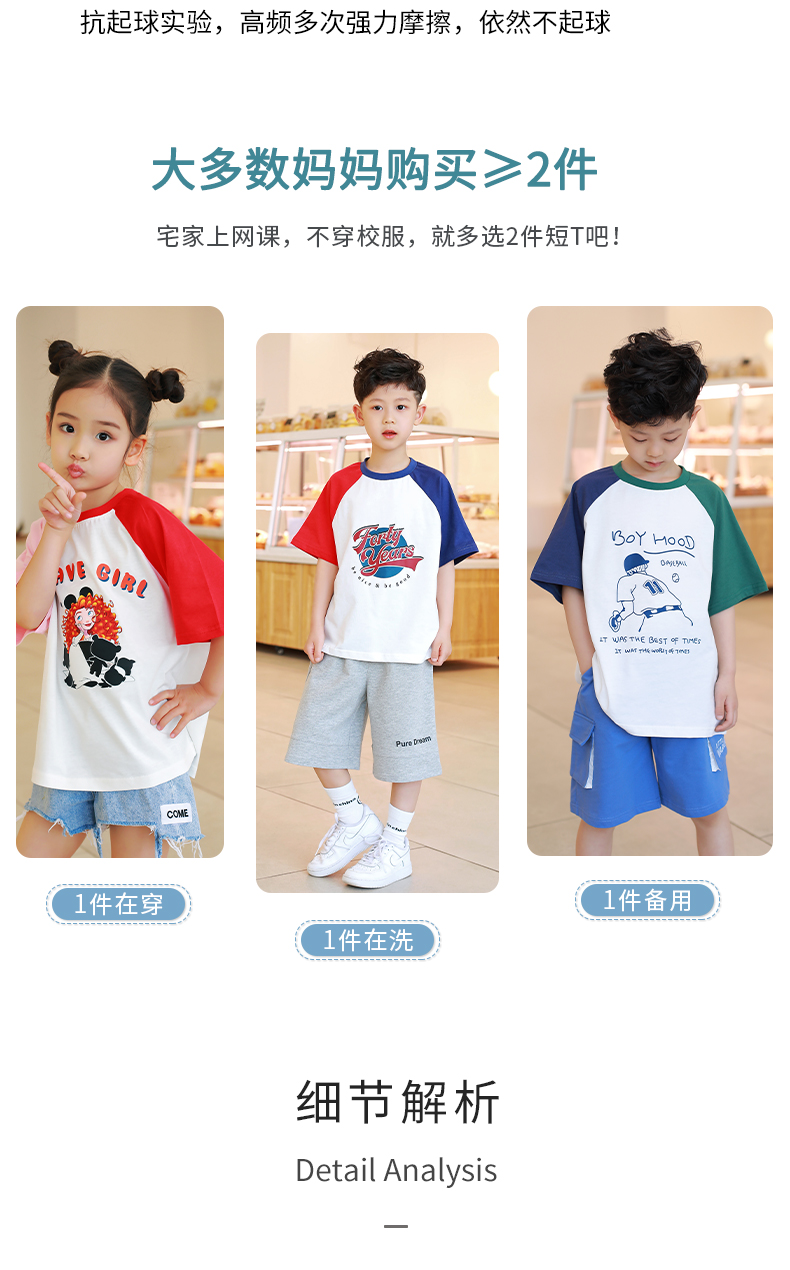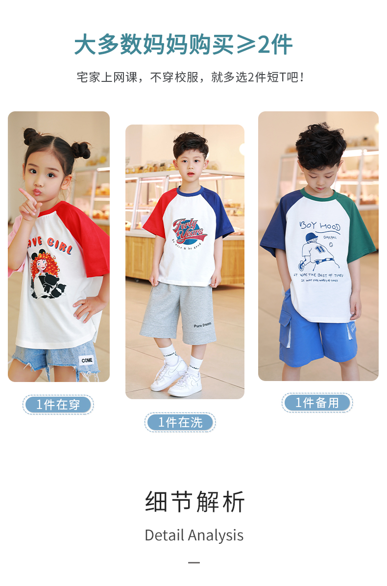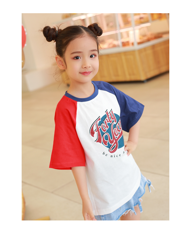 【设计师爆款】龙之涵原创插肩袖短T短袖 60S新疆长绒棉 男女中大童100-170码 运动活力感 儿童趣味印花麻感短袖T恤