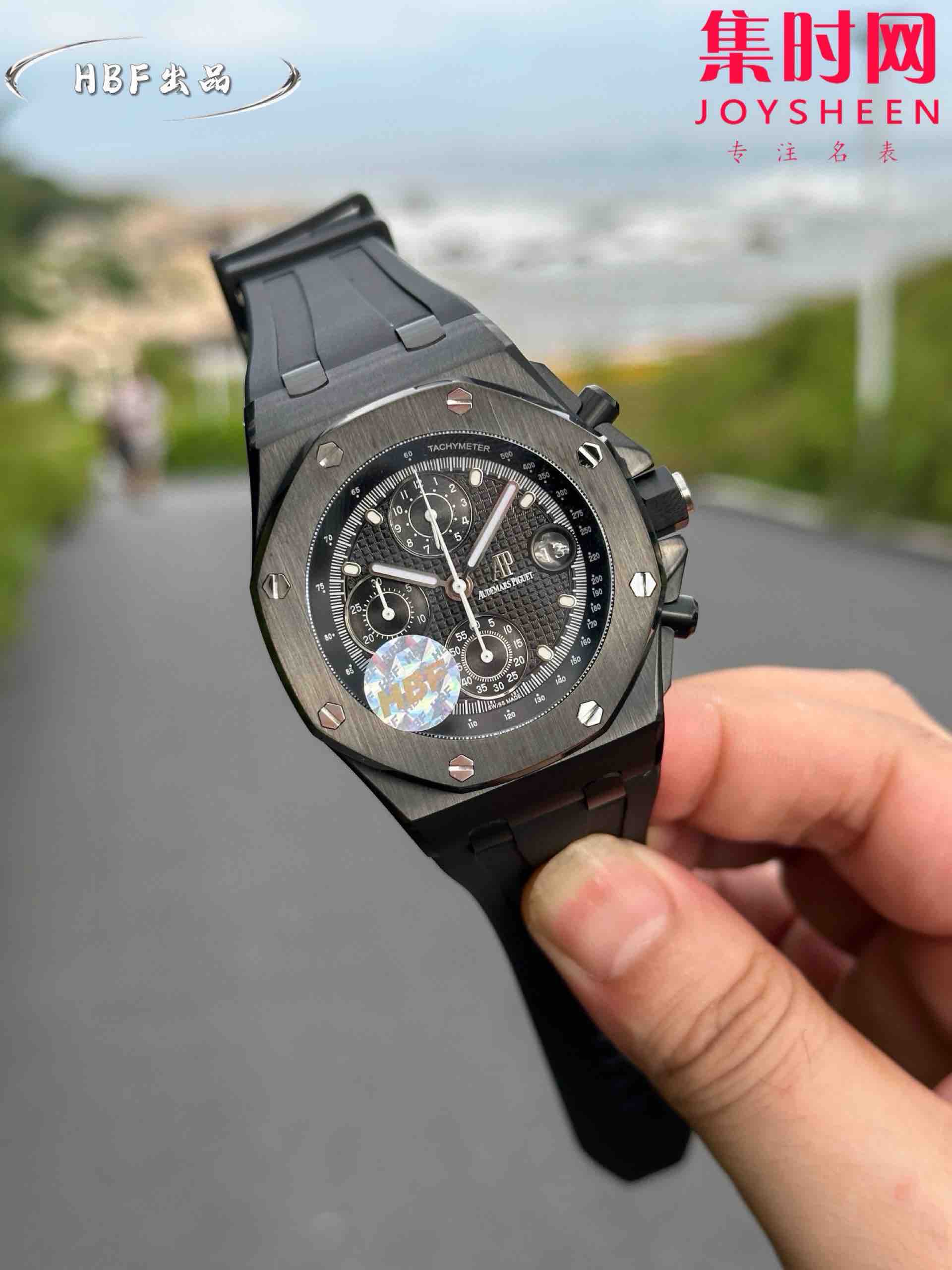 AP爱彼 HBF皇家橡树离岸型系列26238 男士腕表 在原有的基础上 潜心研发 突破壁垒 “打破原装封锁技术,同步原装计时码表款可松动头粒”使上手大程度贴合手腕,大大提高了佩戴的舒适 同时也杜绝一眼假的尴尬处境。真正做到从每一个喜欢手表的表友角度考虑采用CNC级别的打磨技术,将整个表壳的个个角度处理